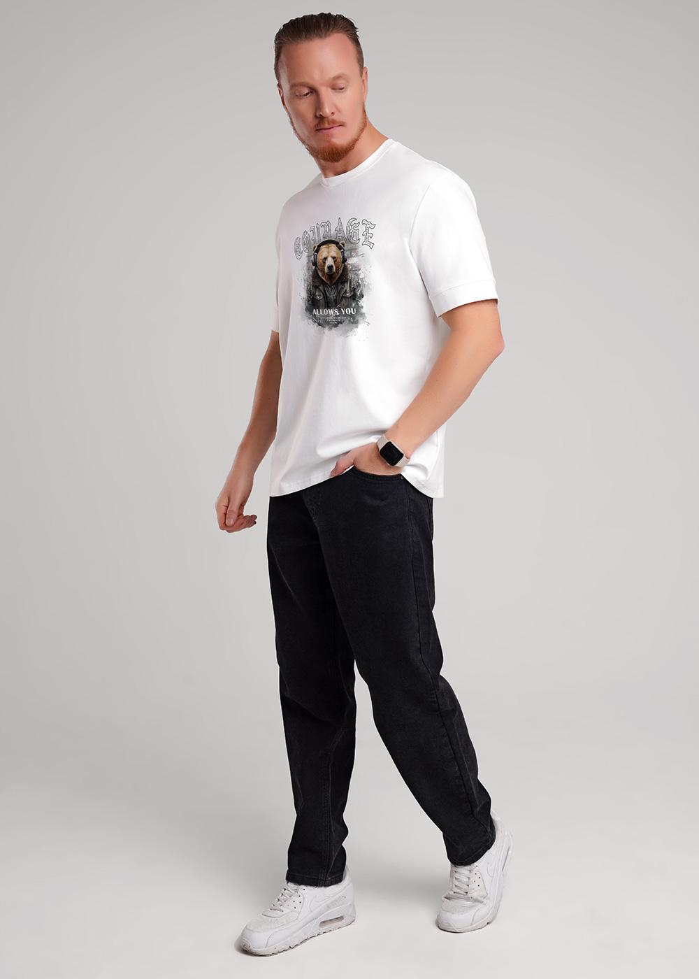 Футболка увеличенного объема из трикотажного плотного, гладкого полотна. Короткие рукава с манжетами. Изделие дополнено дизайнерским принтом. Отличный вариант для встреч с друзьями.