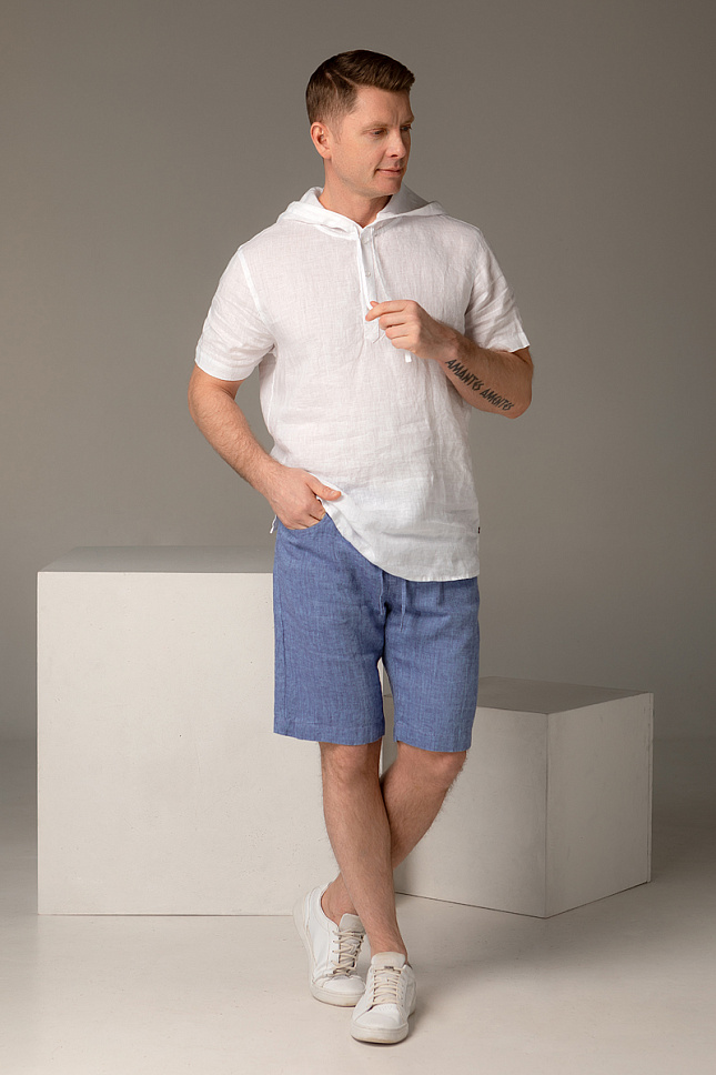 Такой предмет гардероба как шорты безусловно удобен и практичен. А поэтому массово внедряется в мужские гардеробы. Дизайнеры марки Kayros догадываются о скрытых мужских желаниях – выглядеть стильно, не жертвуя комфортом. Поэтому предлагают обратить внимание на представленную модель мужских шорт. Простые и лаконичные формы не так просты как кажутся на первый взгляд. Они могут стать верным спутником не только на отдыхе, но и в рабочие будни. А с наступлением лета – их никто не отменял. Представленная модель обладает одним неоспоримым преимуществом перед аналогами. Материал из которого они изготовлены – это натуральный лён. Он задаёт тональность всему образу, в виду своей жатой текстуры и обеспечивает хорошую воздухопроницаемость. Волокна натурального льна не вызывают раздражения кожных покровов. Прямой крой в сочетании с длинной до колена прекрасно подойдёт для мужчин и юношей самой разной комплекции. Эластичный пояс удобно надевать и снимать, а в процессе ношения не вызывает дискомфорта плотным прилеганием к телу. Боковые карманы, фигурная кокетка на задней части и большие накладные карманы – стали уже излюбленными декоративными элементами.