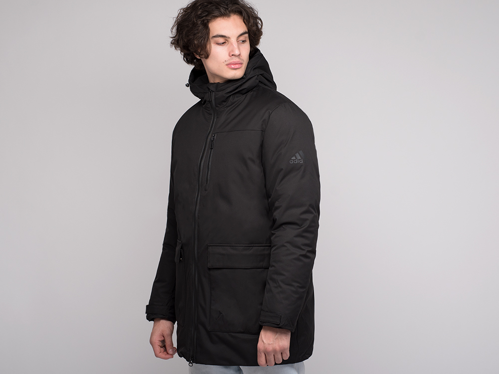 Стильная мужская куртка Adidas черного цвета удлиненного фасона пошита из полиэстера с подкладкой на синтепоне. Модель с застежкой на молнии имеет несъемный капюшон без опушки, два накладных кармана и один врезной нагрудный на молнии. Ворот-стойка, капюшон и застежка на молнии помогут сохранить тепло на каждый день. Декором изделия служат увеличенная форма накладных боковых карманов, шлицы на рукавах, молния нагрудного кармана, шнуровка капюшона и нарукавный карман. Изделие без логотипов и контрастных элементов стильно смотрится и подойдет на каждый день.