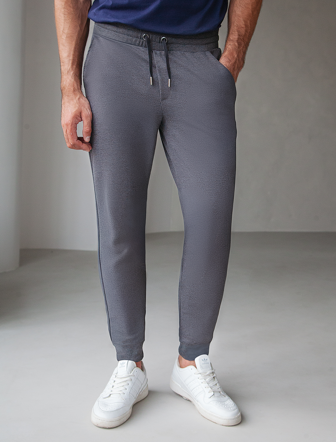 Брюки-джоггеры выполнены из эластичного футера. Изделие с двумя боковыми и одним задним карманом украшено логотипом бренда. Посадка регулируется шнуром, продетым в широкий эластичный пояс. Мягкий и плотный материал хорошо пропускает воздух, а наличие ПЭ в составе способствует формоустойчивости и легкости изделия. Сочетается в костюме с худи U49.039 серый меланж