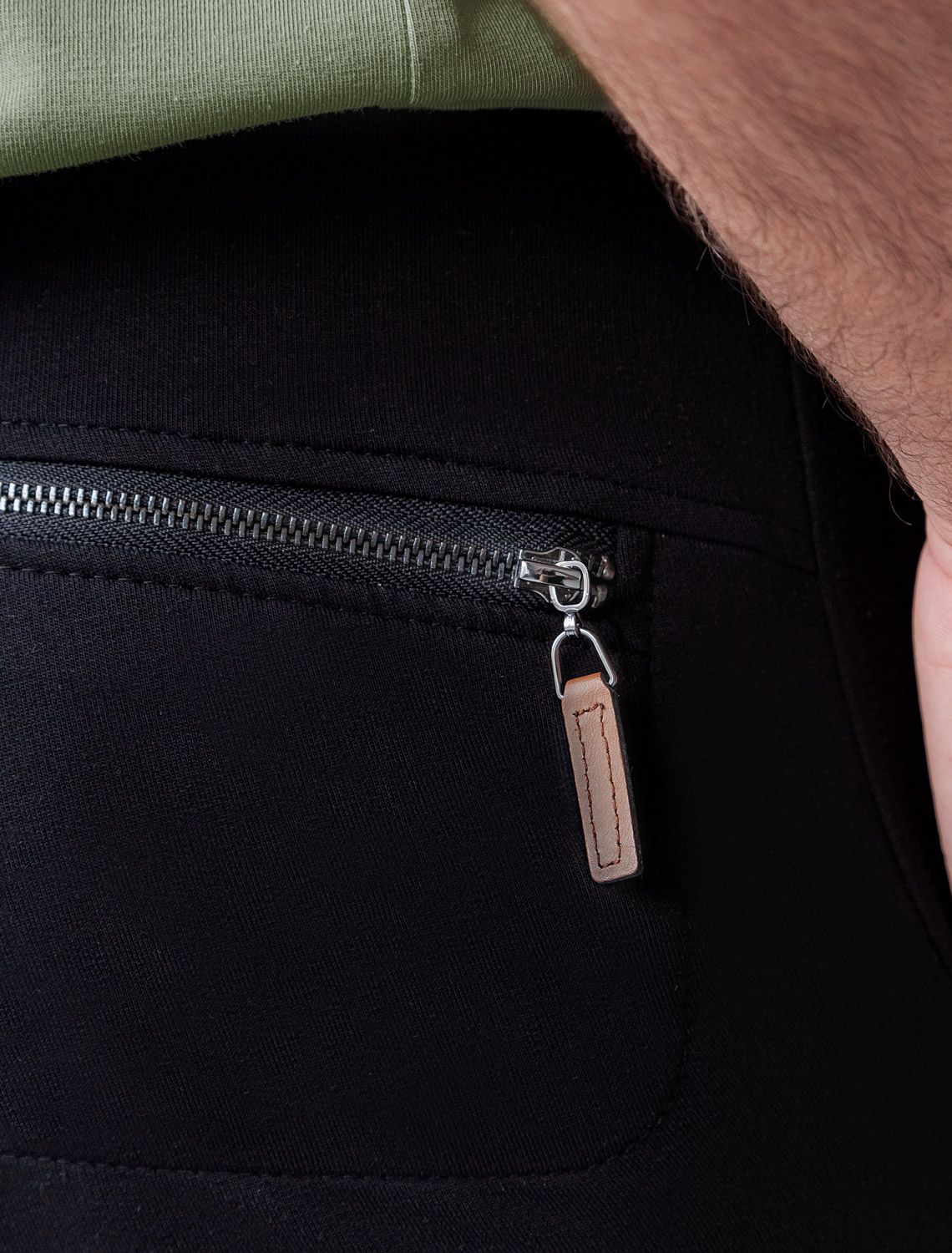 Брюки из тонкого футера с карманом на молнии U44.005 черный