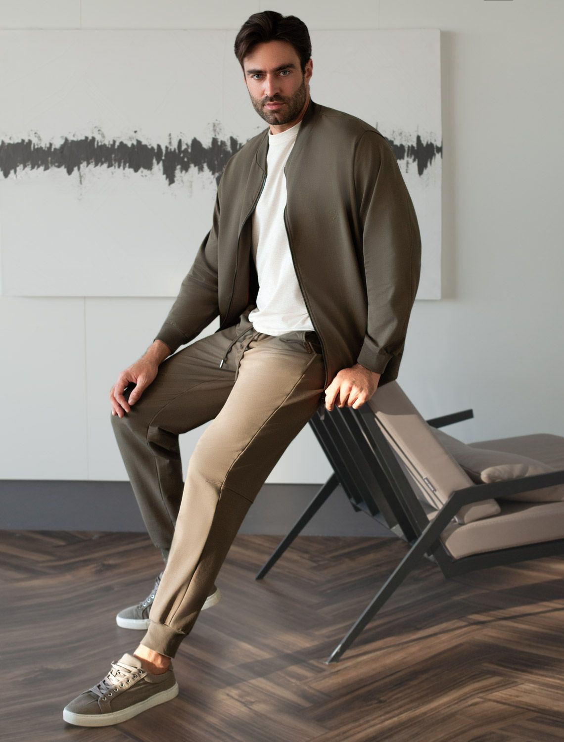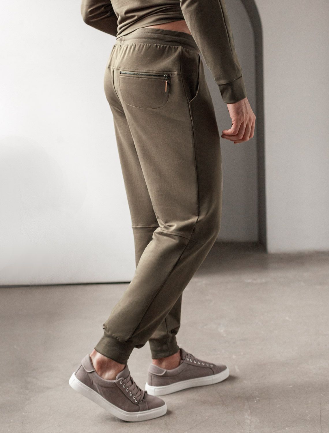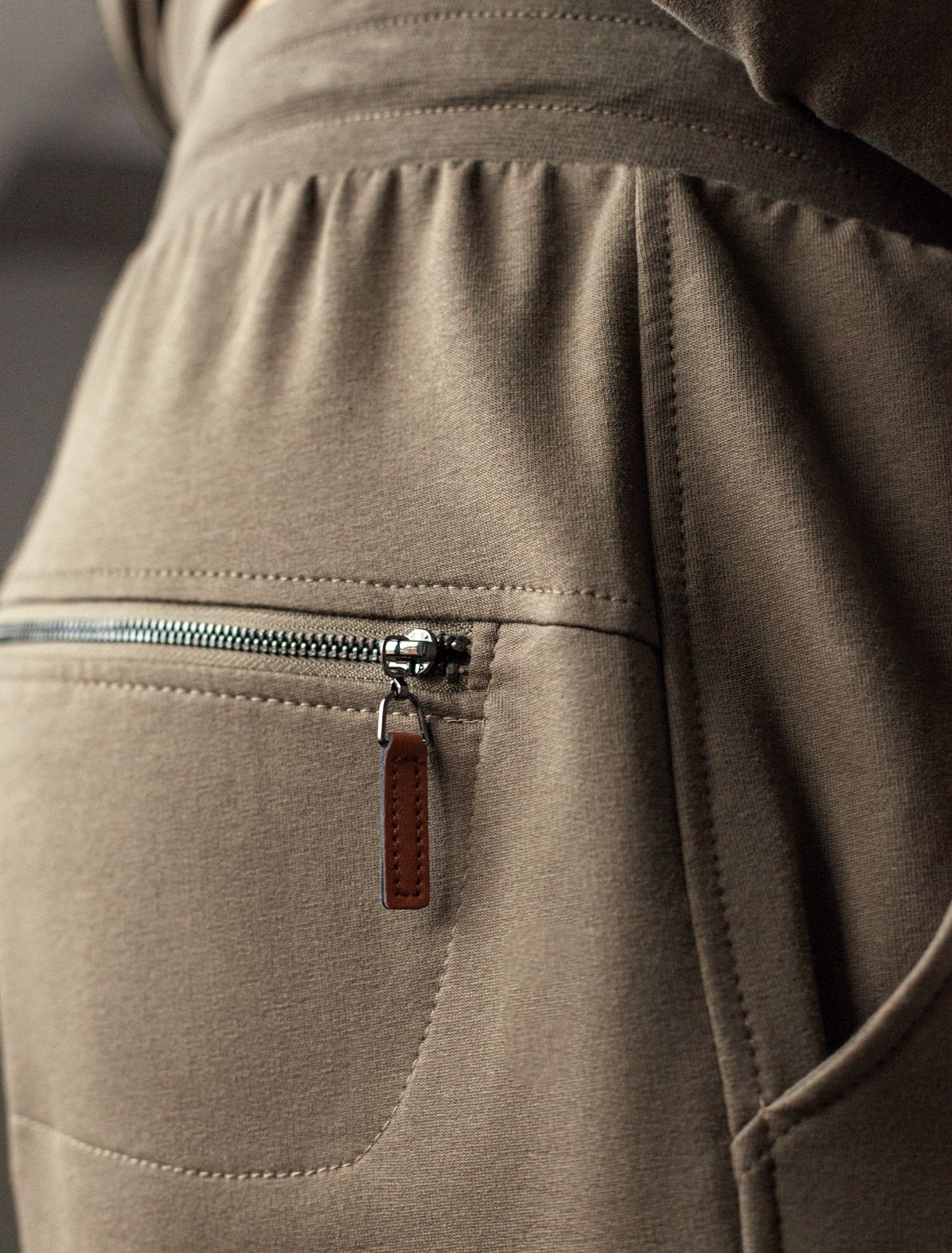 Брюки из тонкого футера с карманом на молнии U44.005 хаки