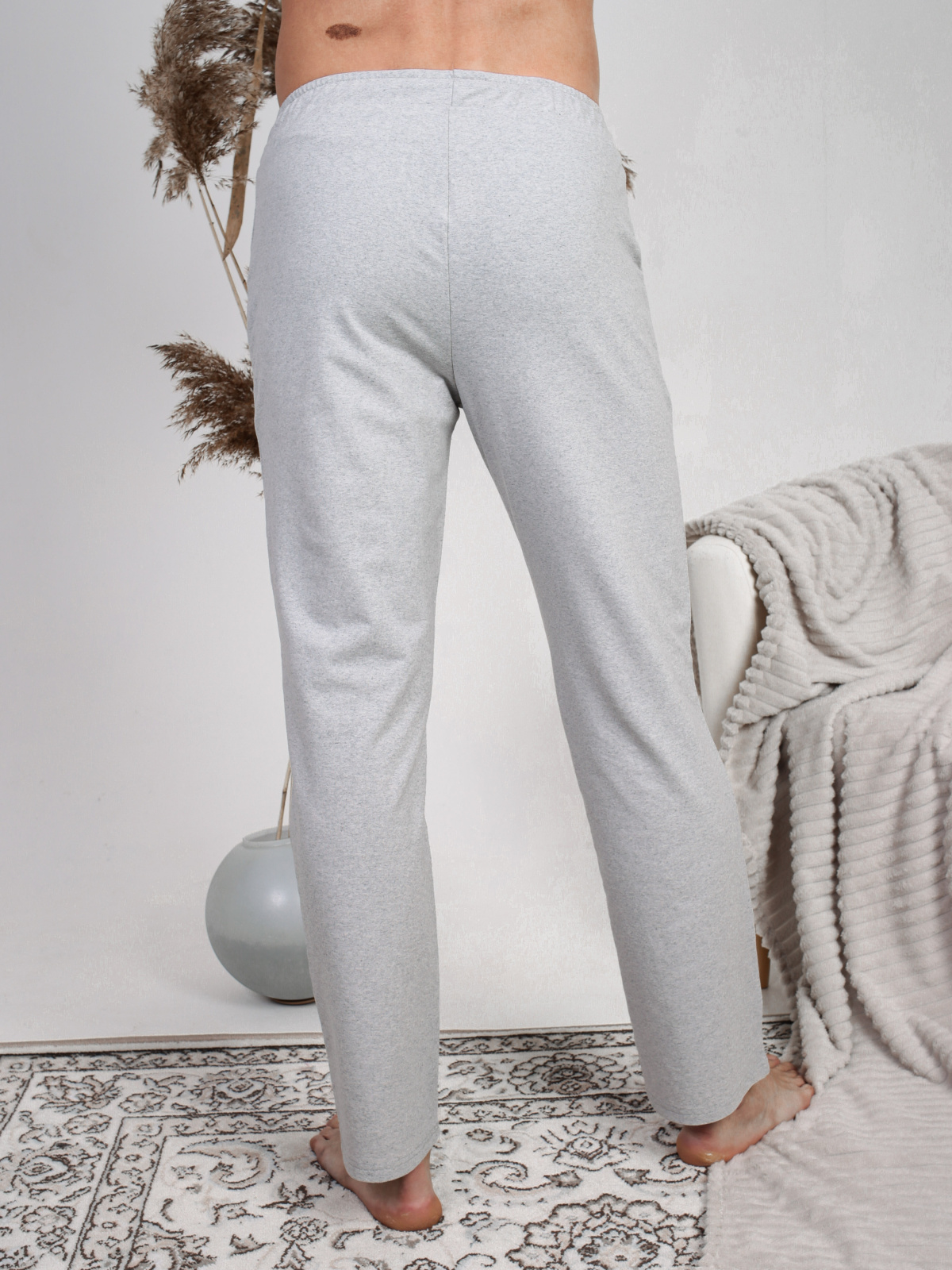 Мужские трикотажные брюки из эластичного, немнущегося, износостойкого и прочного трикотажа, шелковистого и приятного на ощупь. Впереди два кармана. Мешковина карманов выполнена из основного полотна, что и само изделие. Брючины внизу прямого покроя. Пояс на эластичной ленте с шнурком, что позволяет его дополнительно регулировать по объему. Подойдут для повседневного использования, прогулок, поездок на отдых.