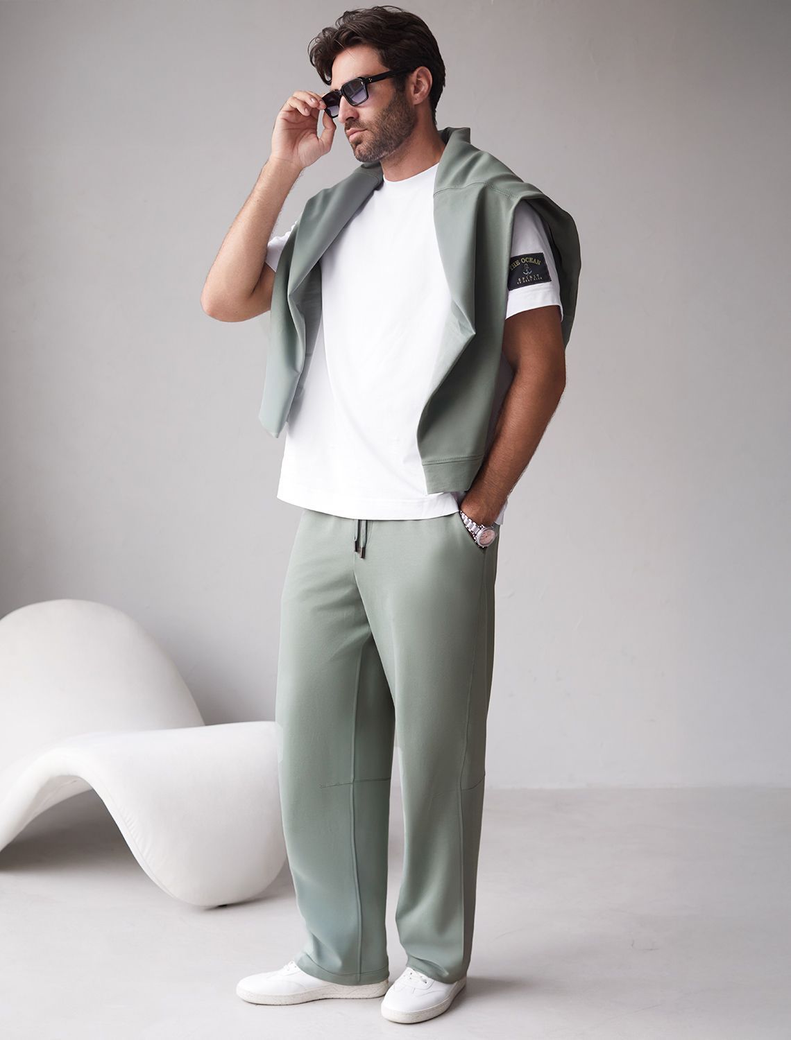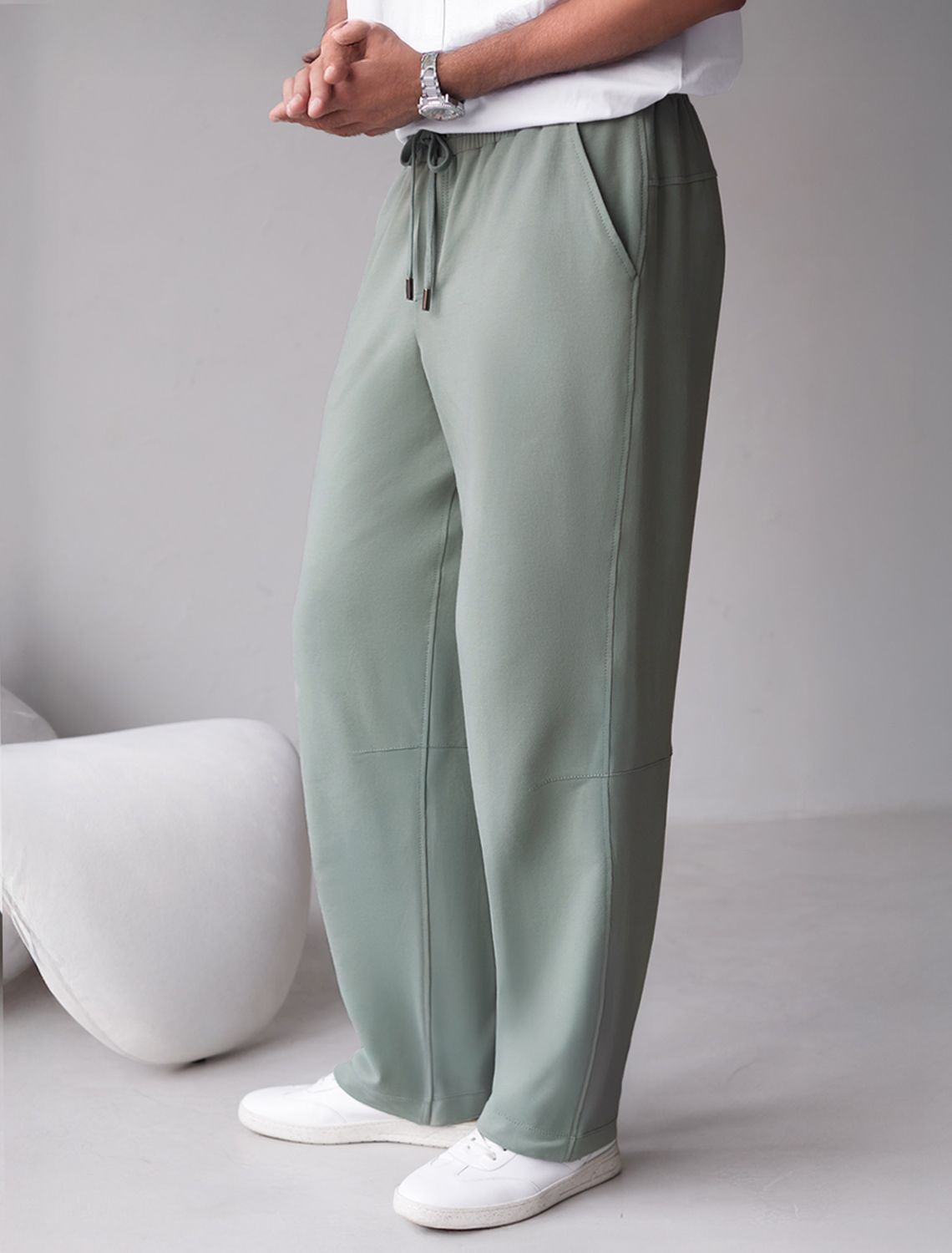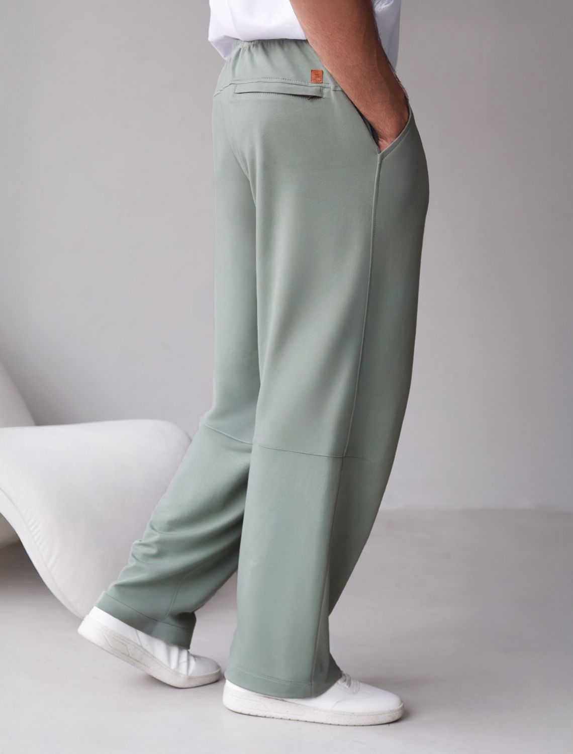 Свободные брюки светло-оливкого цвета с эластичным поясом на резинке и шнуром с металлическим наконечником изготовлены из премиального футера двухнитки. Натуральная ткань, в составе которой хлопок и эластан, отличается дышащими свойствами и мягкостью на ощупь, обеспечивает комфорт и удобство в повседневной носке. Трикотажные брюки сохраняют свой первоначальный вид после многочисленных стирок, что делает их практичными для активного использования. Повседневные брюки дополнены карманами по бокам и одим задним карманом на молнии, что позволяет удобно хранить необходимые мелочи. Внизу расположены затяжки на стопорах, тем самым можно регулировать посадку под индивидуальные предпочтения каждого мужчины.