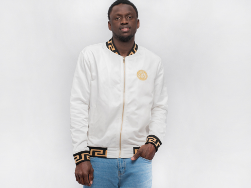 Выполнен из полиэстера. Бомбер с круглым вырезом, застежкой на молнии,
