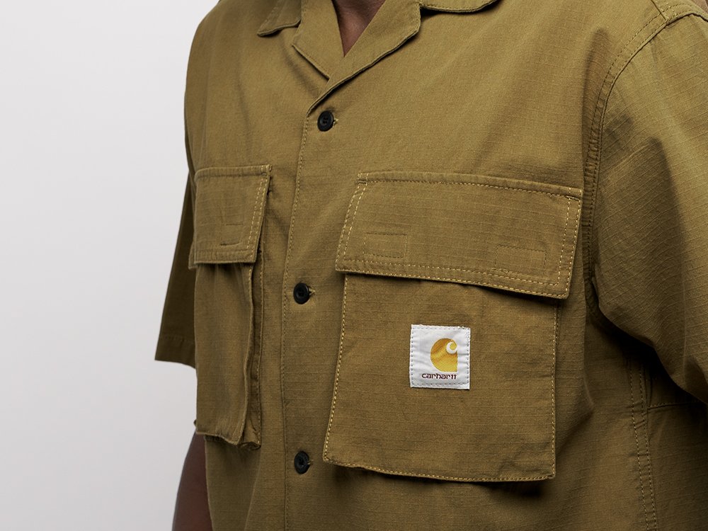 Рубашка CarHartt с коротким рукавом — универсальная деталь в гардеробе. Минималистичная рубашка