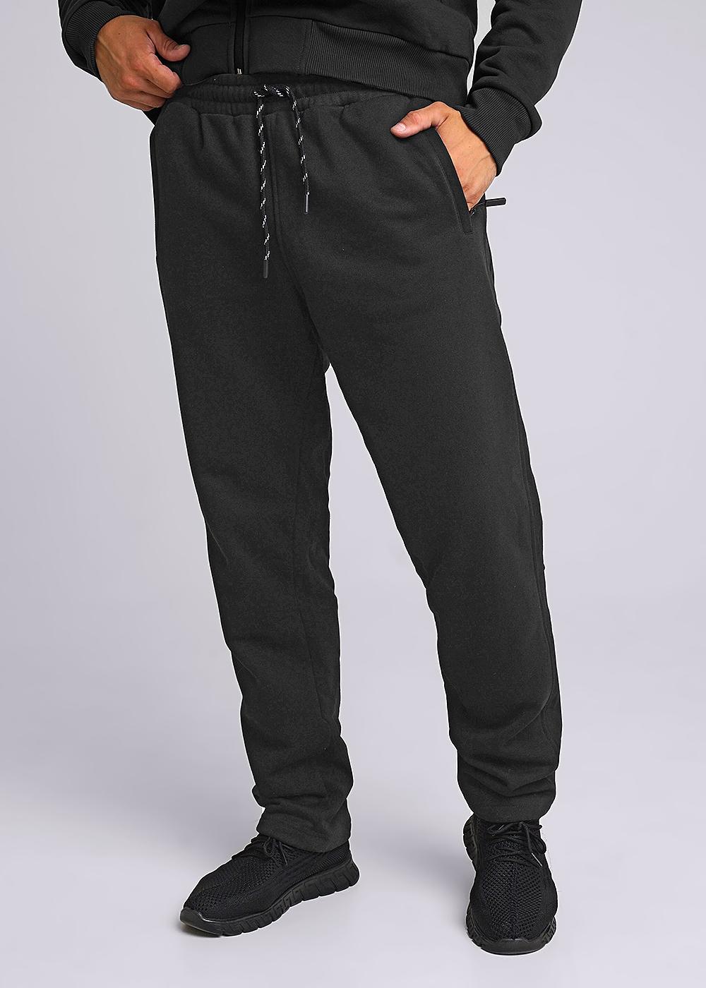 Брюки мужские прямые из плотного футера с начёсом, пояс на резинке с регулируемым шнуром. Функциональности модели придают боковые карманы на молнии. Брюки очень эргономичные и удобные, прекрасно подойдут для повседневной носки.