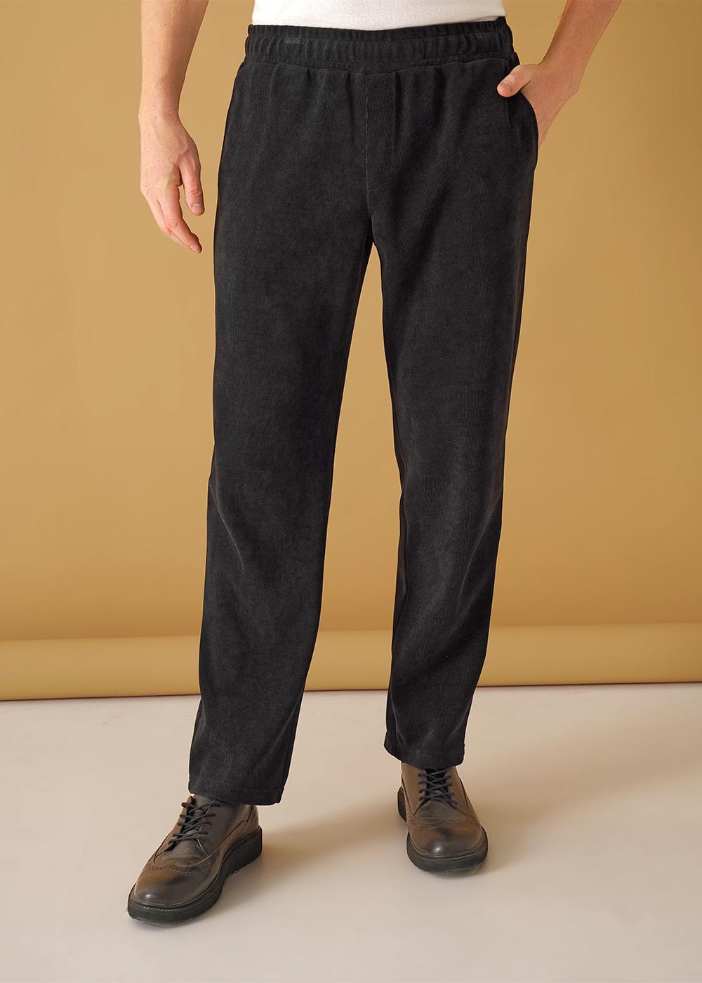 Стильные брюки из трикотажного полотна "вельвет". Модель с поясом на регулируемом шнуре и удобными боковыми карманами. Идеально подойдут для повседневного пользования в режиме большого города.