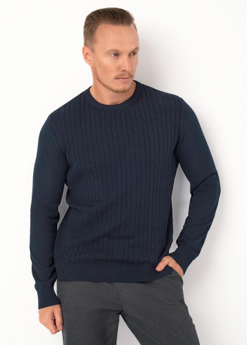 Джемпер мужской из смесовой хлопковой пряжи с длинным рукавом и груглой горловиной. Изделие дополнено вязкой с классическим узором "косы". Прекрасно сохраняет тепло, отличное решение на холодное время года. Комбинируется с джинсами или брюками.
