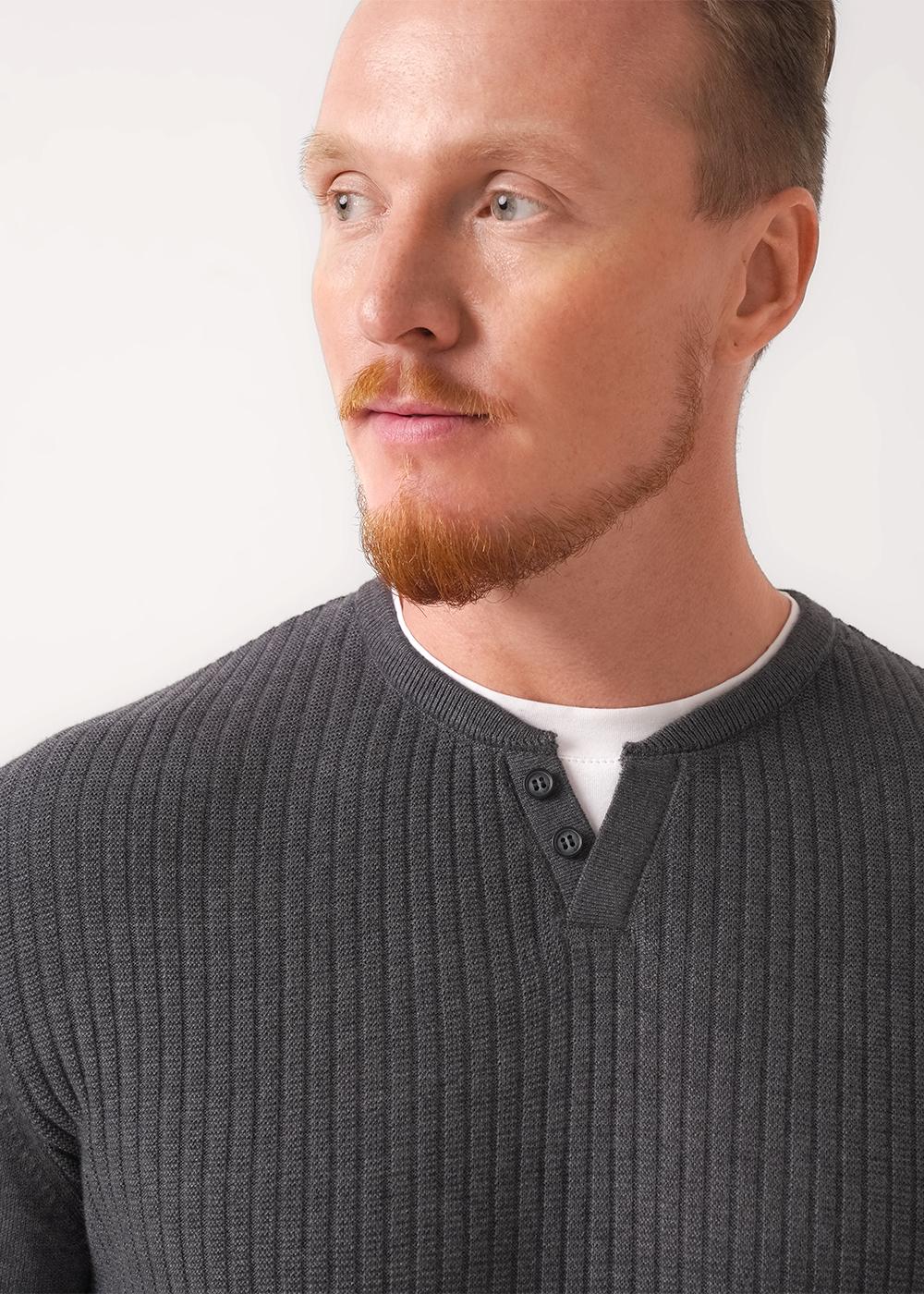Джемпер мужской из смесовой хлопковой пряжи с длинным рукавом, планкой с иммитацией двойной горловины. Отличное решение на холодное время года. Данный джемпер можно комбинировать с брюками или джинсами. Прекрасно подойдёт для похода на работу.