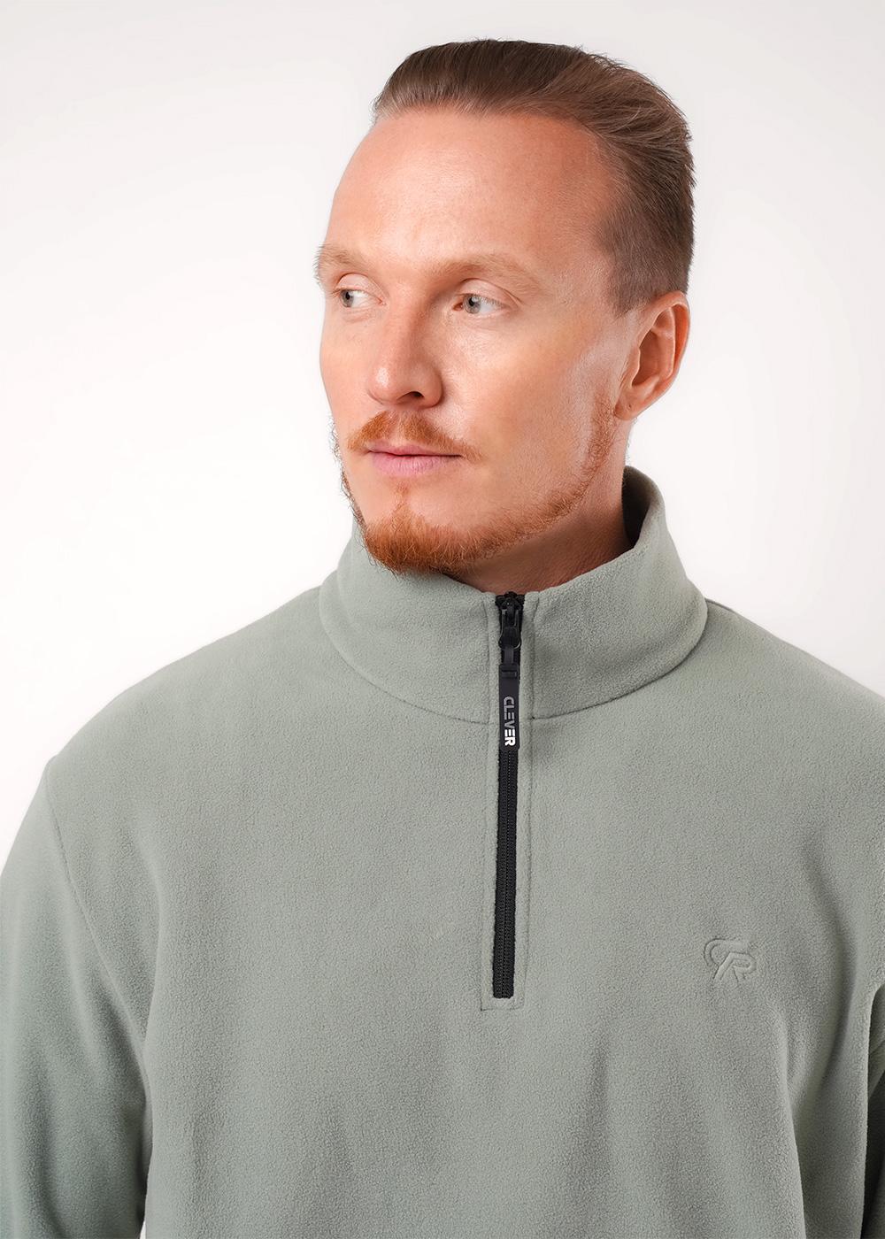Мужская толстовка выполнена из мягкого теплого флиса. Воротник-стойка и укороченная застежка на молнию будут максимально защищать от ветра и холода. Модель дополнена имиджевой вышивкой и контрастной фурнитурой.