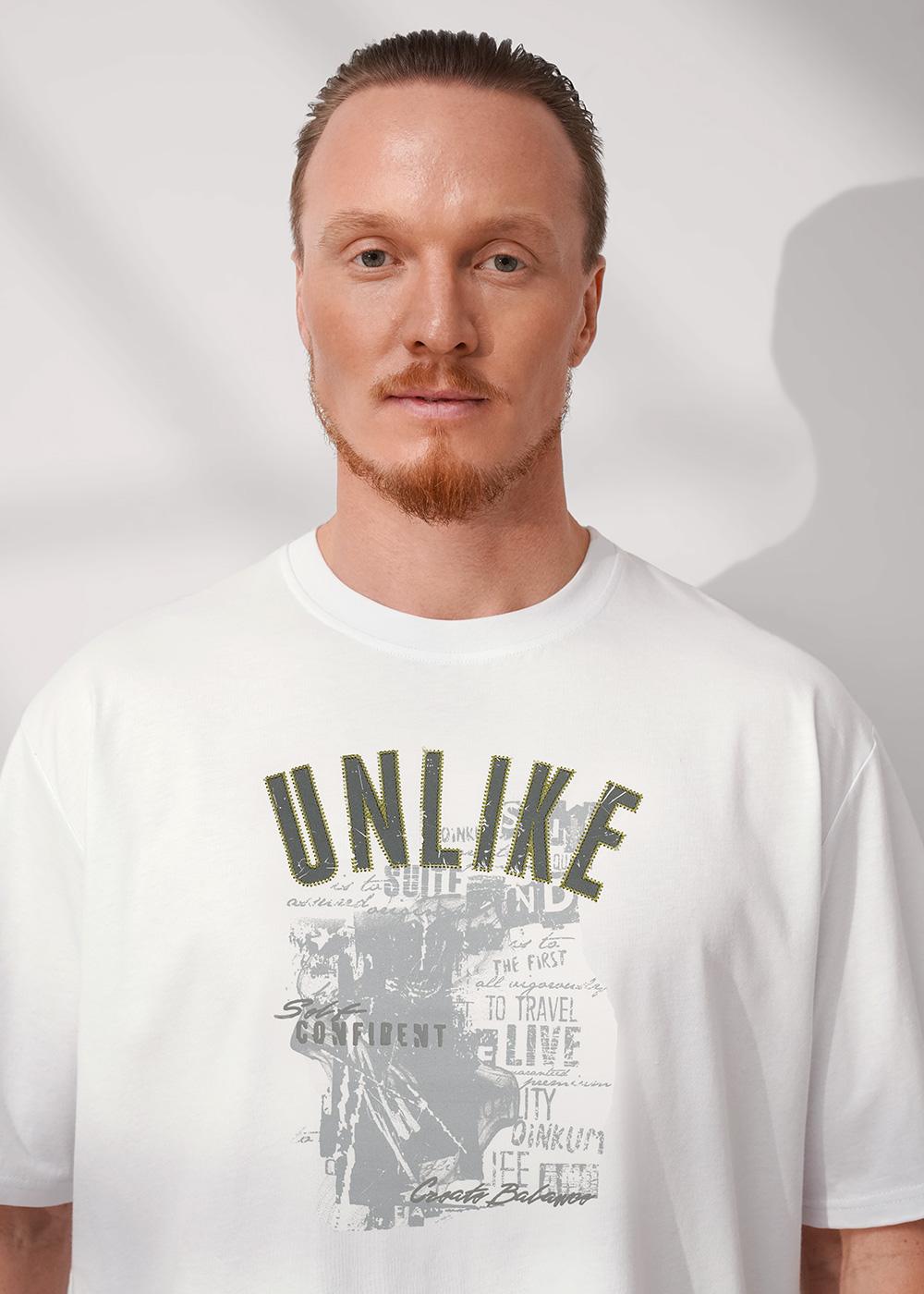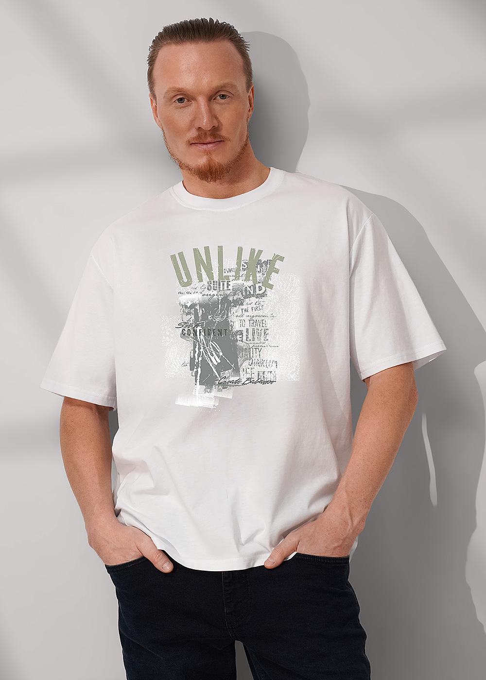 Описание: Футболка мужская, увеличенного объема, из хлопкового полотна, круглым вырезом горловины и втачным рукавом. Оригинальность изделию придает дизайнерский принт. Отличный вариант на каждый день.