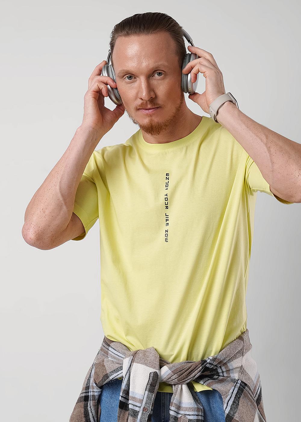 Описание: Футболка мужская, увеличенного объема, из хлопкового полотна, круглым вырезом горловины и коротким втачным рукавом. Оригинальность изделию придает дизайнерский принт, а также горизонтальный рез по спинке. Отличный вариант на каждый день.