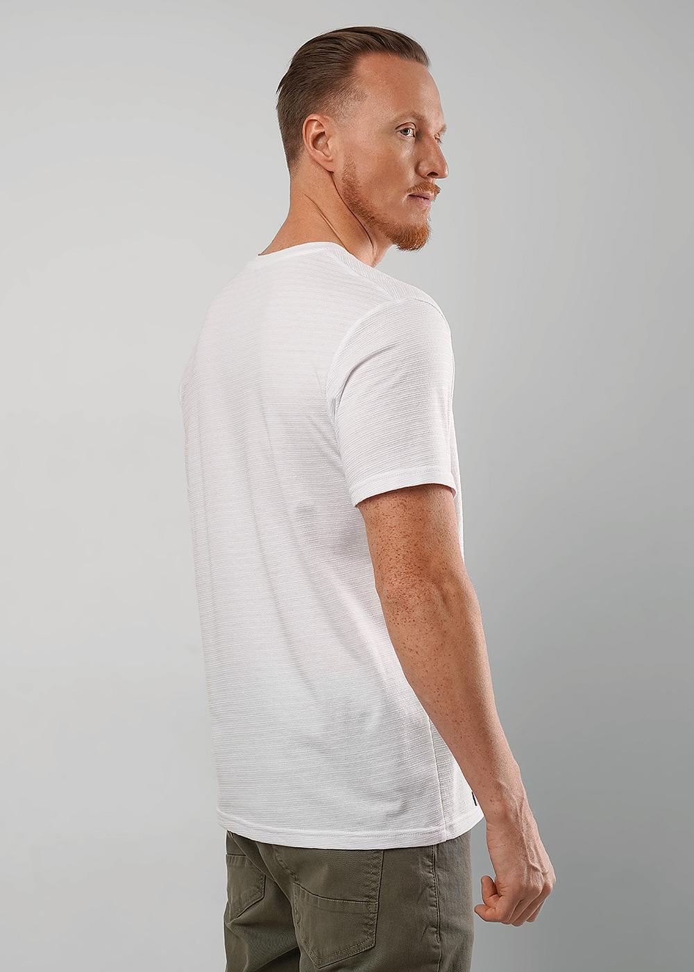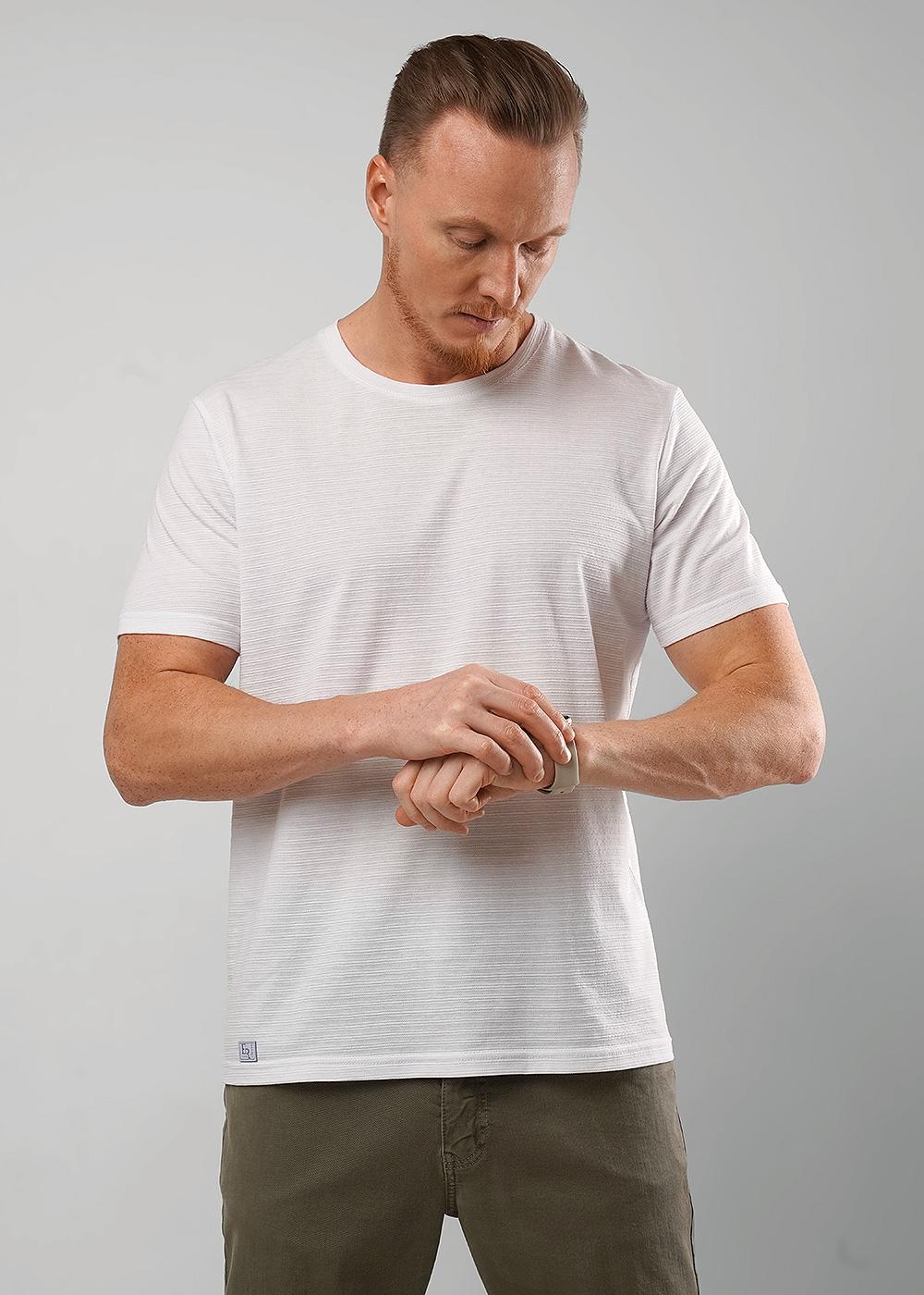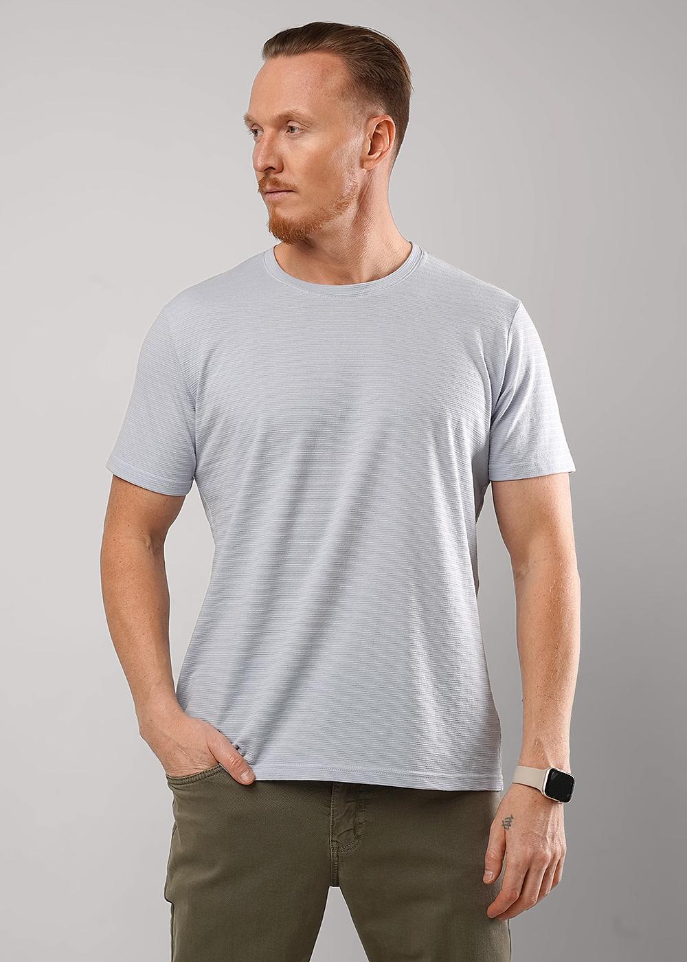 Описание: Футболка мужская из фактурного полотна, с содержанием хлопка и полиэстера. С круглым вырезом горловины и коротким втачным рукавом. Оригинальность изделию придает дизайнерская нашивка