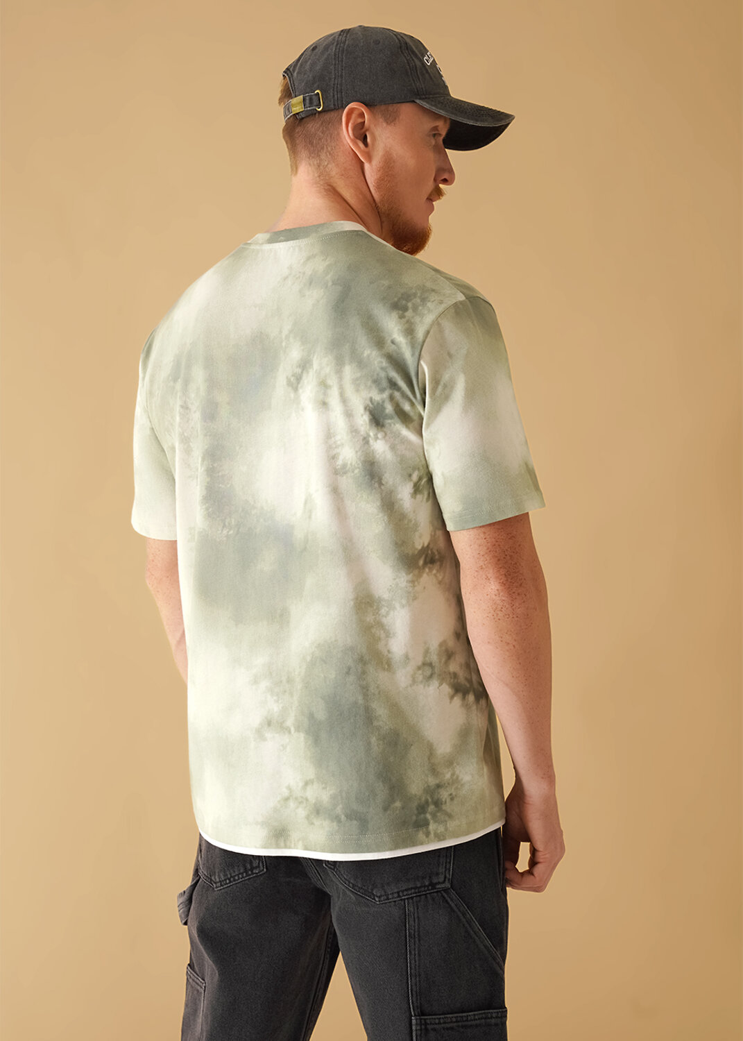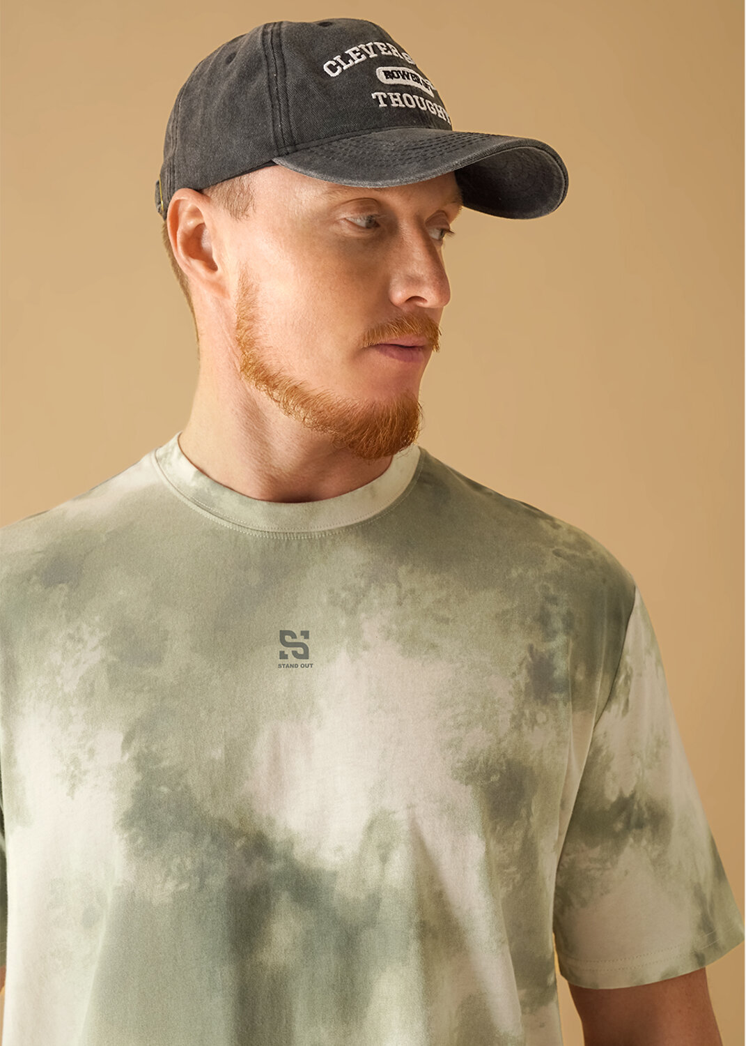 Стильная мужская футболка увеличенного объема. Выполнено из трикотажного полотна в хаотичную набивку. Изделие с круглым вырезом горловины и коротким рукавом. Модель дополняет принт и имиджевая фурнитура. Хорошо сочетается с джинсами.