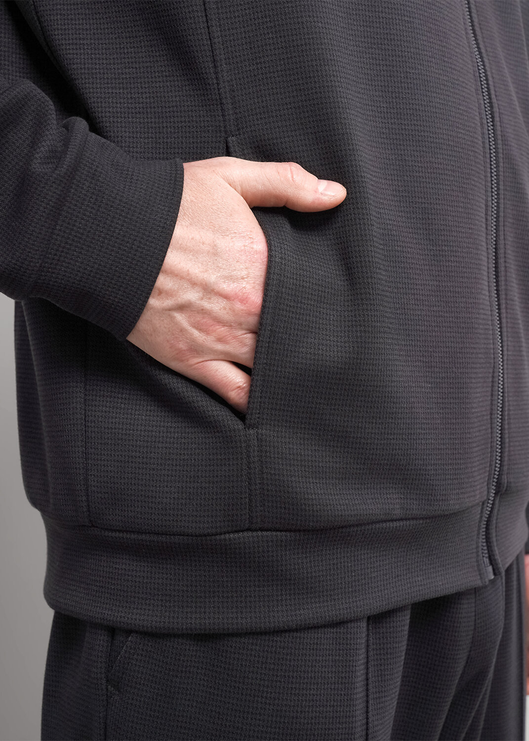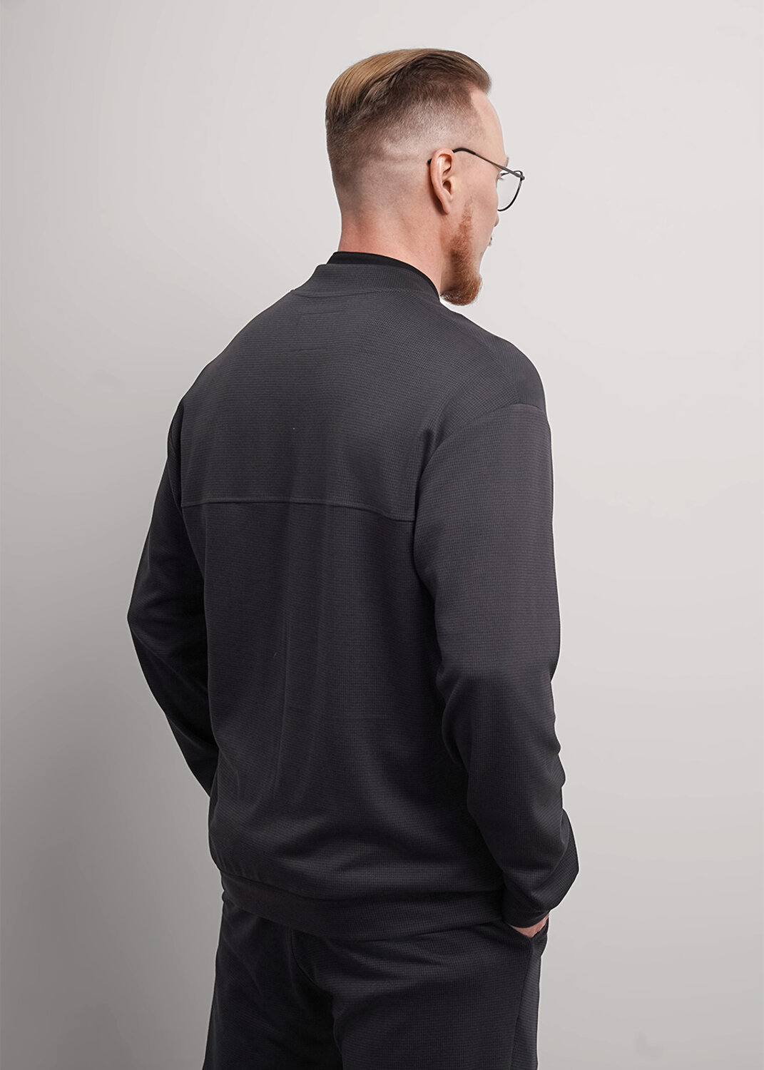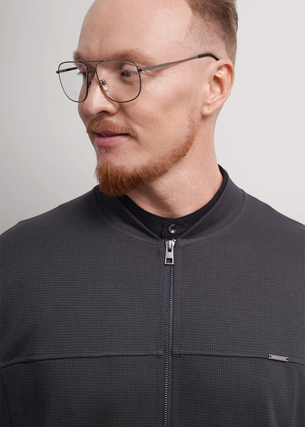 Мужской бомбер на молнии из жаккардового трикотажного полотна. Дизайн модели дополнен имиджевой фурнитурой. Стильное решение для похода на учебу или работу.