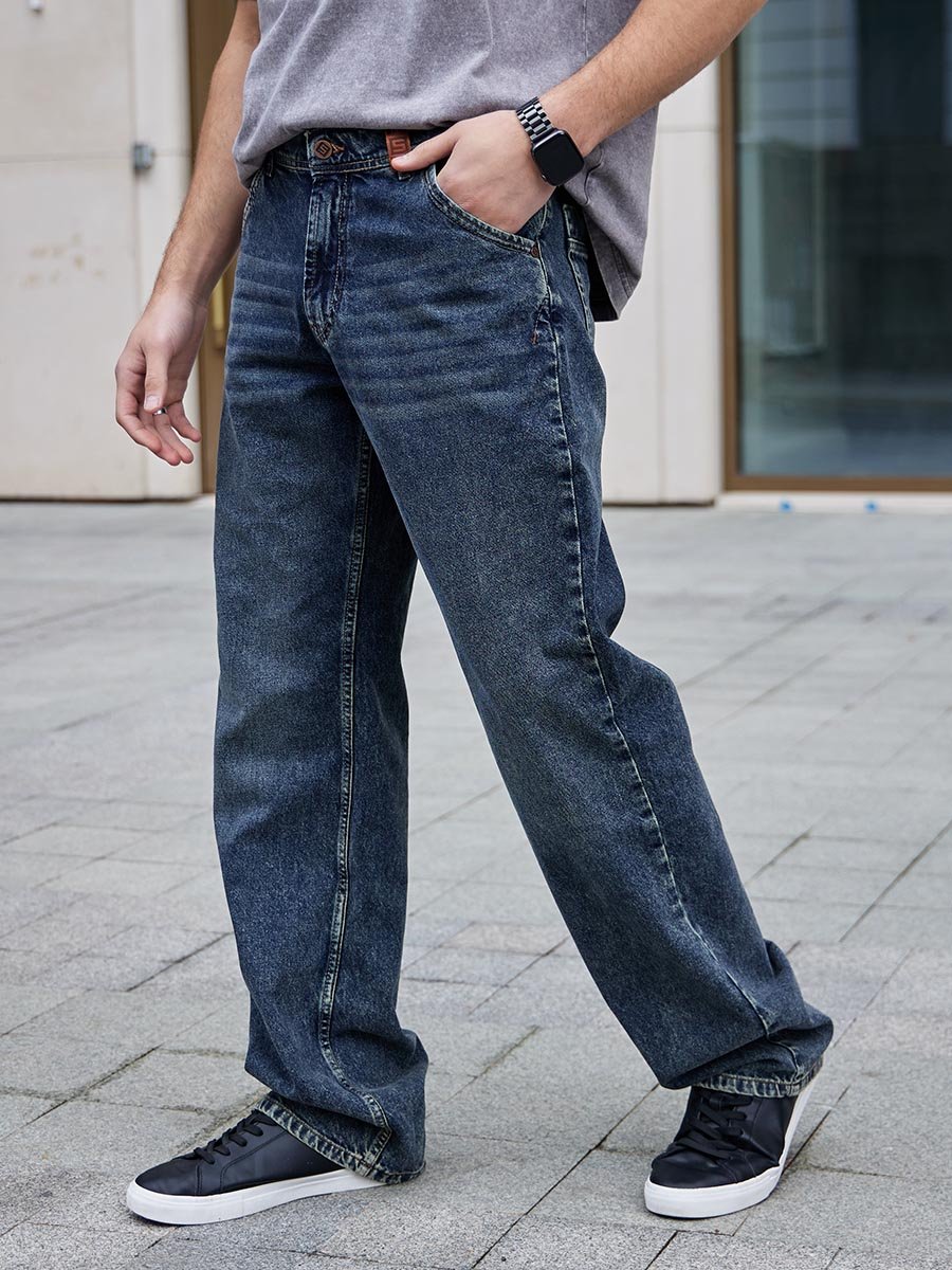 Окунитесь в эпоху легендарных 90-х с нашими винтажными джинсами! Эти мужские джинсы с пятью карманами, высокой посадкой, широким кроем штанин и с застежкой на молнию созданы для тех, кто ценит свободу движений и дизайн в стиле casual. Эта модель предлагает не просто одежду, а чувство уверенности и уникальный ретро образ, который снова на пике моды. Изготовлены из традиционного денима средней плотности. Постираны по технологии каменной стирки (stone wash), поэтому вы ощутите мягкость и комфорт с первой же примерки. Для получения эффекта дополнительной состаренности джинсы постираны по технологии тинтования "GET DIRTY" чтобы получить эффект запачканных джинсов.