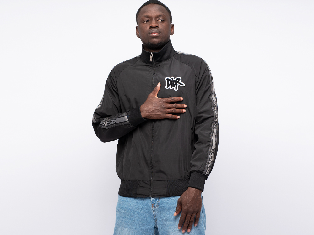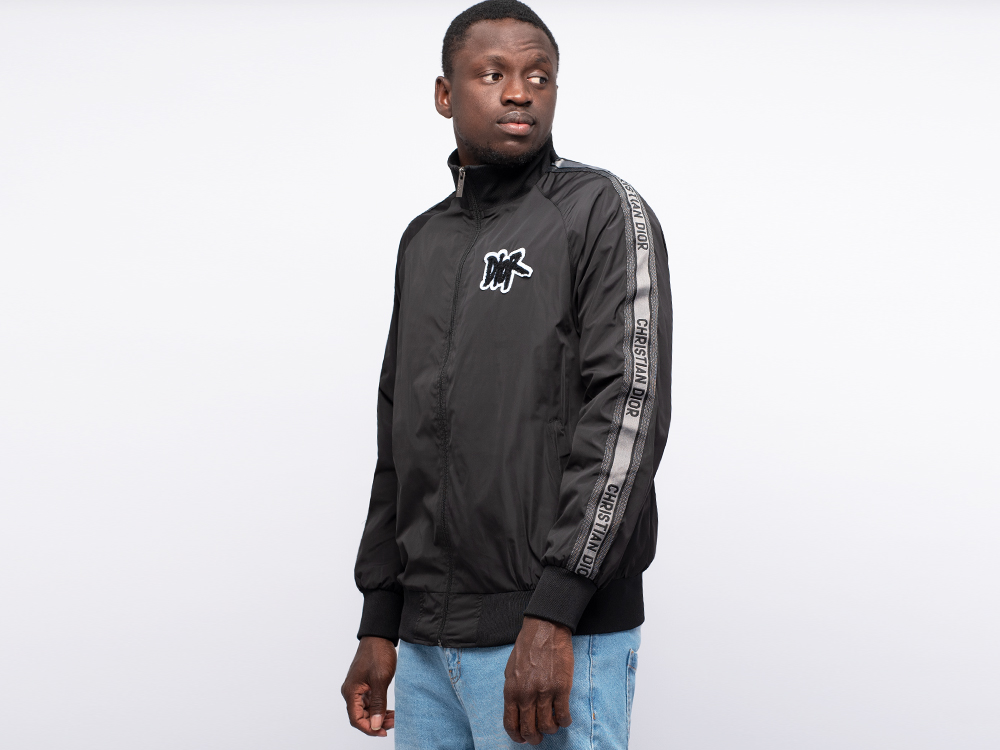 Ветровка Dior декорирована лампасами с названием бренда и логотипом на груди.