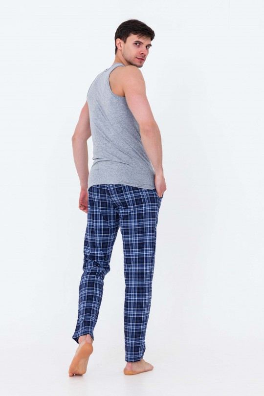 46523М Брюки мужские, клетка р. 46-60, цв.синий