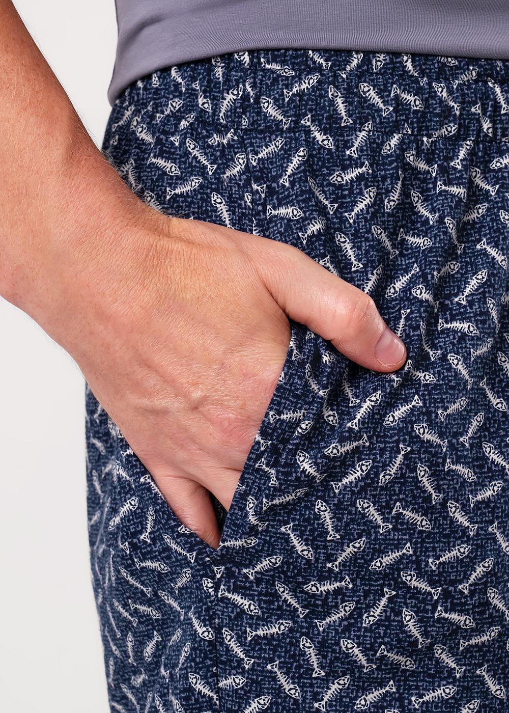 Мужские шорты из трикотажного полотна в набивку на широком поясе с резинкой, регулируемым шнуром и боковыми карманами. Создай свой стильный образ вместе с домашними шортами Clever .