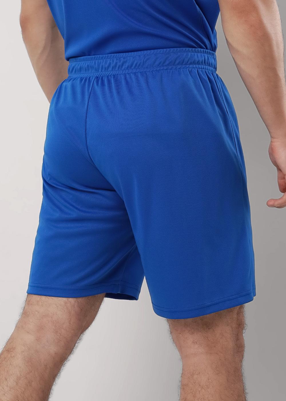 Спортивные мужские шорты средней длины с боковыми карманами и внутренним шнуром. Модель выполнена из ПЭ, благодаря эластичному полотну не мнется, не вытягивается и дает динамику движениям. Подойдут для активных тренировок в зале или на улице.