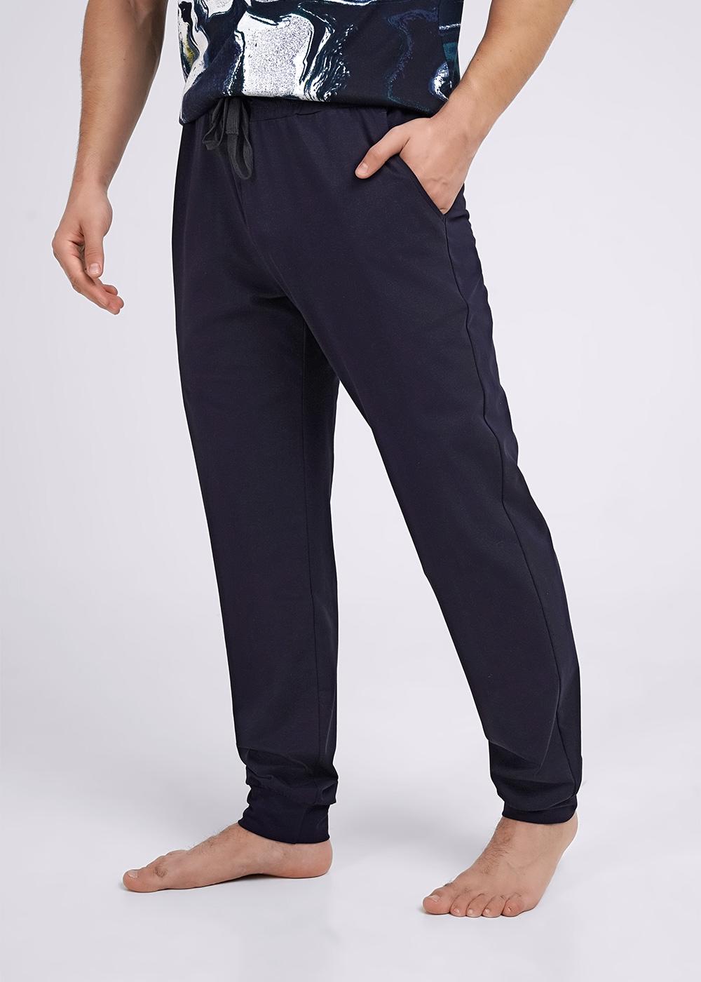 Комплект мужской состоящий из футболки и брюк. Футболка из трикотажного полотна с авторской набивкой и коротким рукавом. Брюки из трикотажного полотна на широком поясе с резинкой и регулируемым шнуром, по бокам удобные карманы.