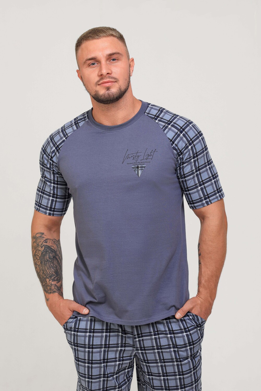 Домашний костюм мужской: футболка и шорты, отличный вариант как одежда для дома и сна. Выполнен в свободном крое, поэтому он не сковывает движения. На выбор представлена модель в больших и маленьких размерах. Футболка прямого кроя с коротким рукавом реглан и округлым вырезом, шорты с боковыми карманами. Мужская пижама с коротким рукавом - это отличный подарок для мужчины. В этом костюме ваш мужчина будет чувствовать себя комфортно и уютно. Цвет: серый; Материал: кулирка;кулирка; Состав: 100% хлопок.
