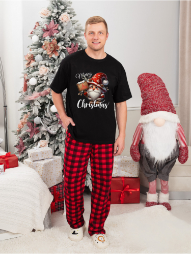 Удобный домашний костюм со штанами для мужчин из 100% хлопка или пижама для дома и сна - носите так как вам нравится. Комплект футболка с оригинальным принтом и пижамные домашние штаны в клетку с карманами. Кулирка/Хлопок 100%