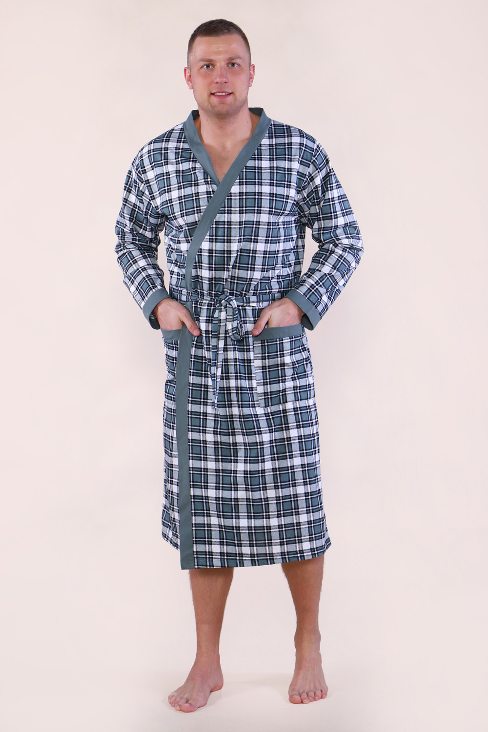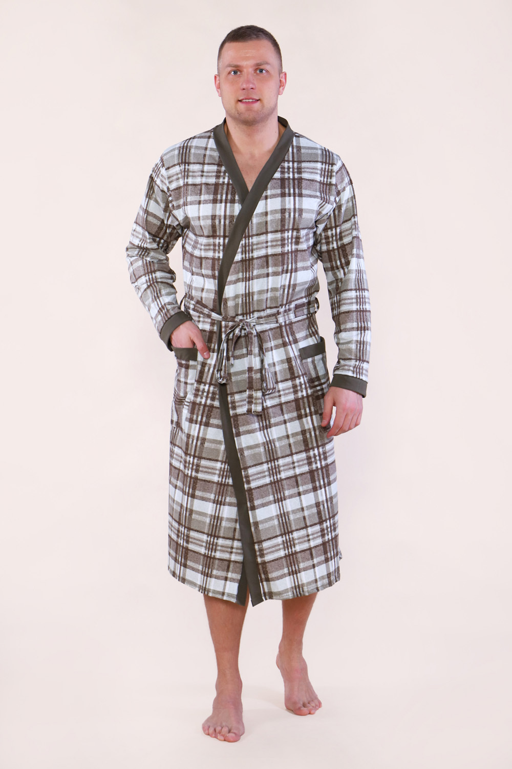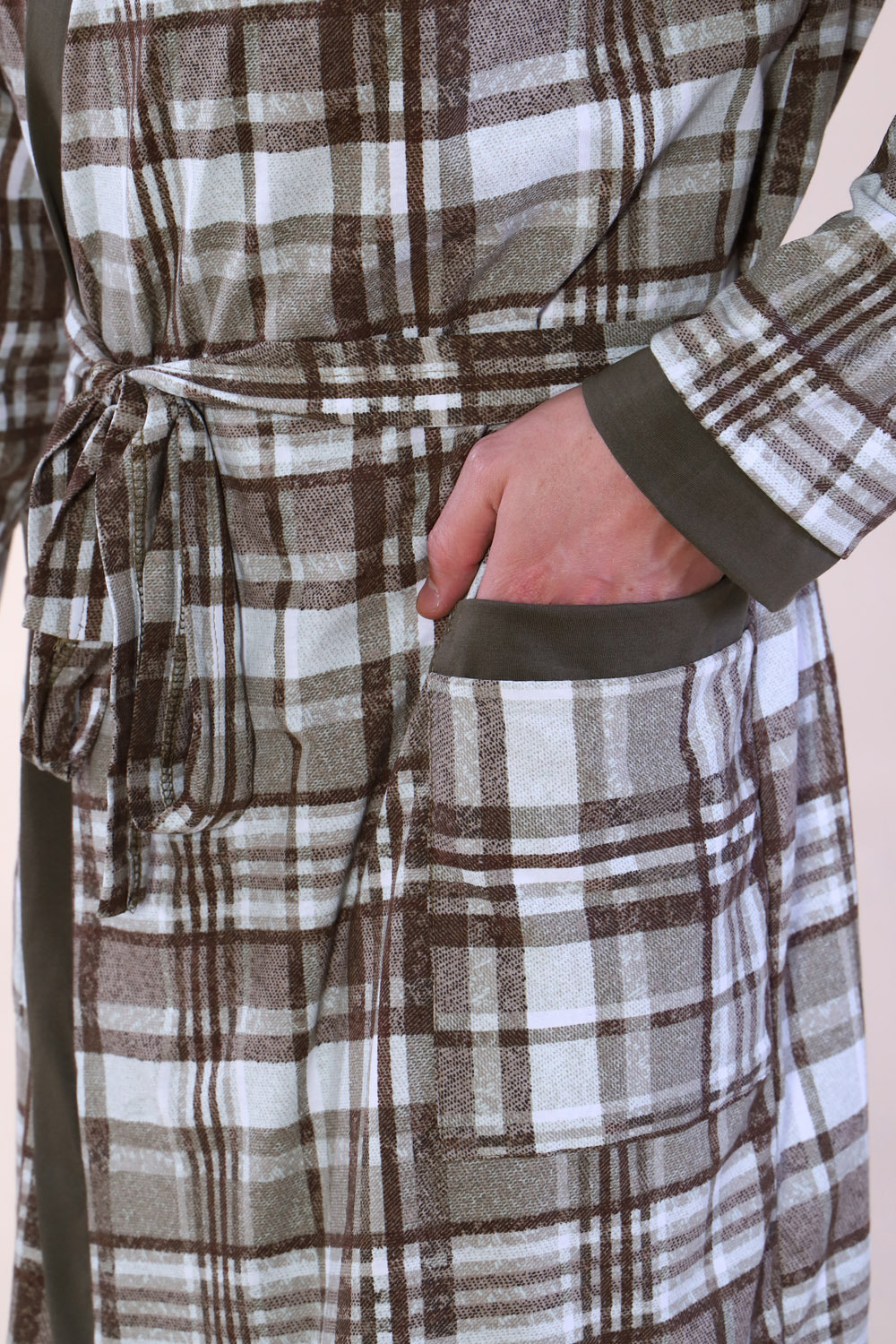Мужской халат в клетку из хлопка это отличный выбор для домашнего уюта и комфорта. Такие халаты обычно имеют свободный крой, что обеспечивает легкость движений, и запашной фасон, который позволяет регулировать плотность облегания благодаря поясу. Цвет: коричневый;зеленый; Материал: кулирка; Состав: хлопок 100%.