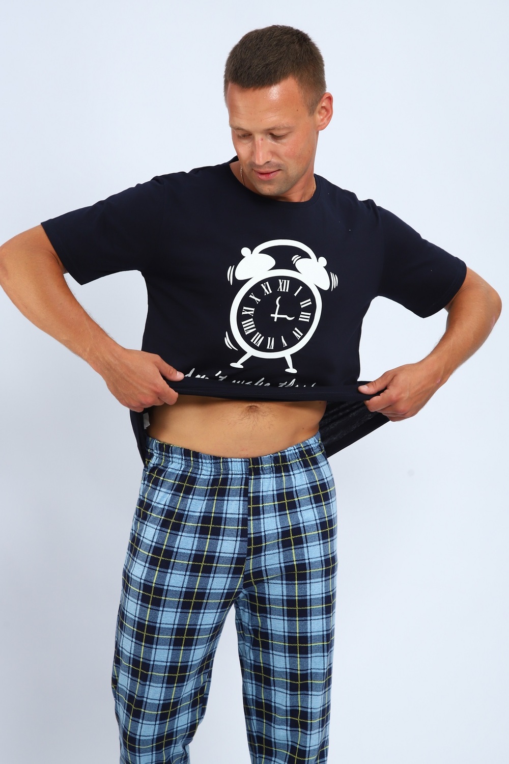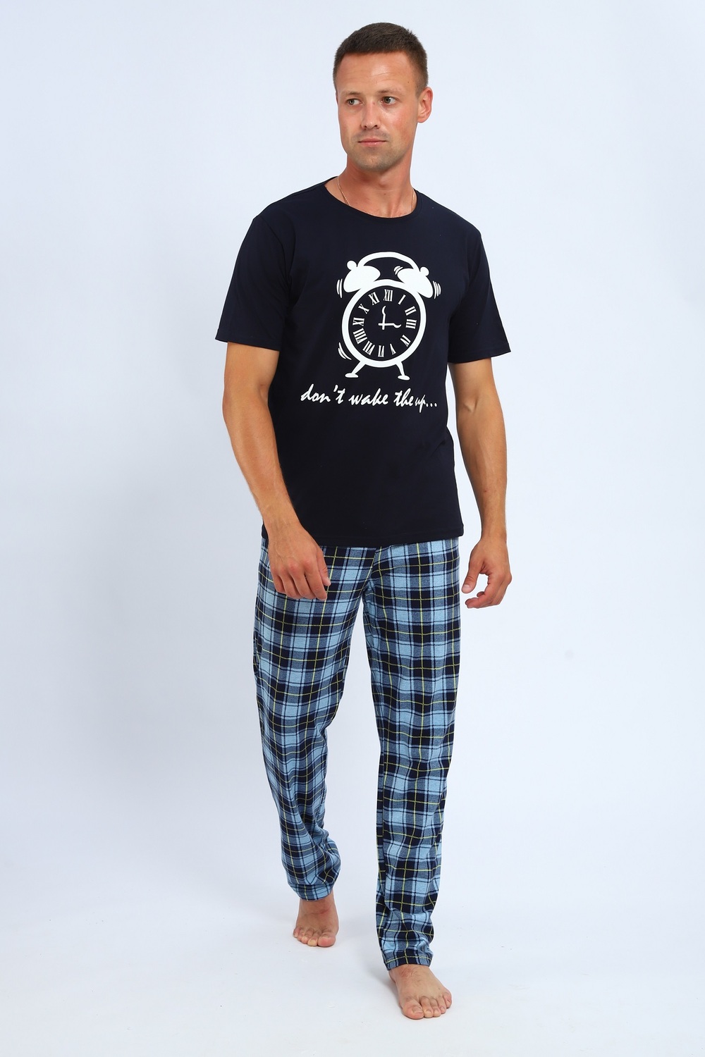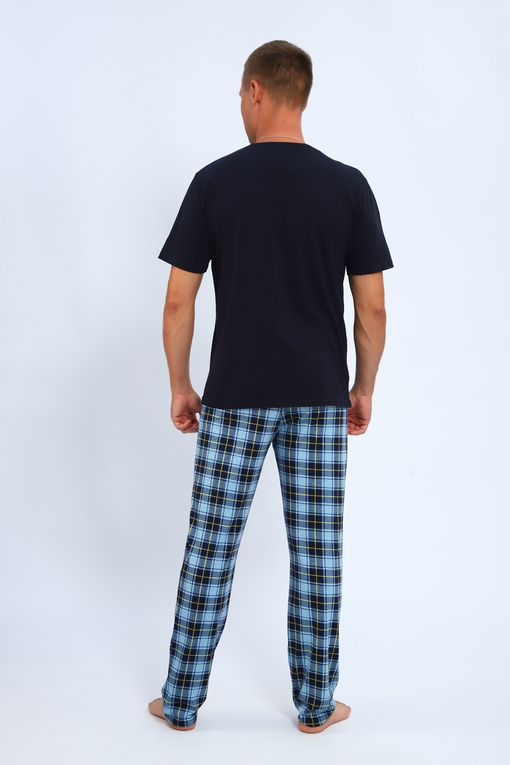 Комплект домашней одежды для мужчины от Руся трикотаж, состоящий из футболки и свободных брюк, выглядит очень стильно и комфортно. Цвет: синий; Материал: кулирка;кулирка; Состав: хлопок 100%.