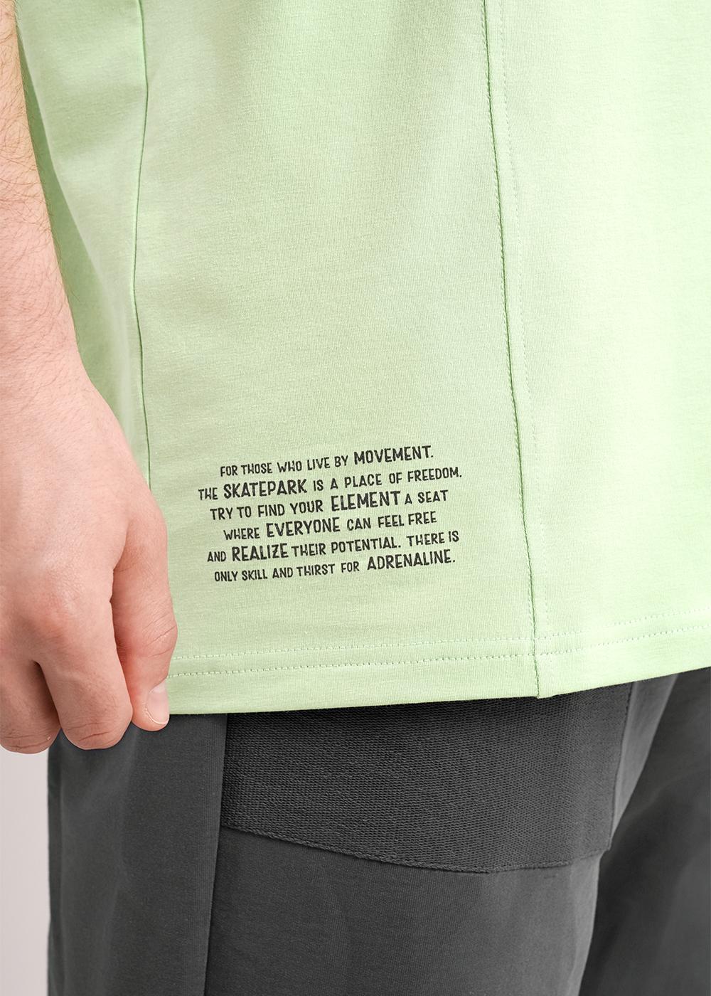 Набор мужской для дома состоящий из футболки и шорт. Футболка из однотонной кулирной глади с круглым вырезом горловины, декоративным резом, коротким рукавом и стильным принтом. Шорты из футера на эластичном поясе с функциональными карманами и шнуром.