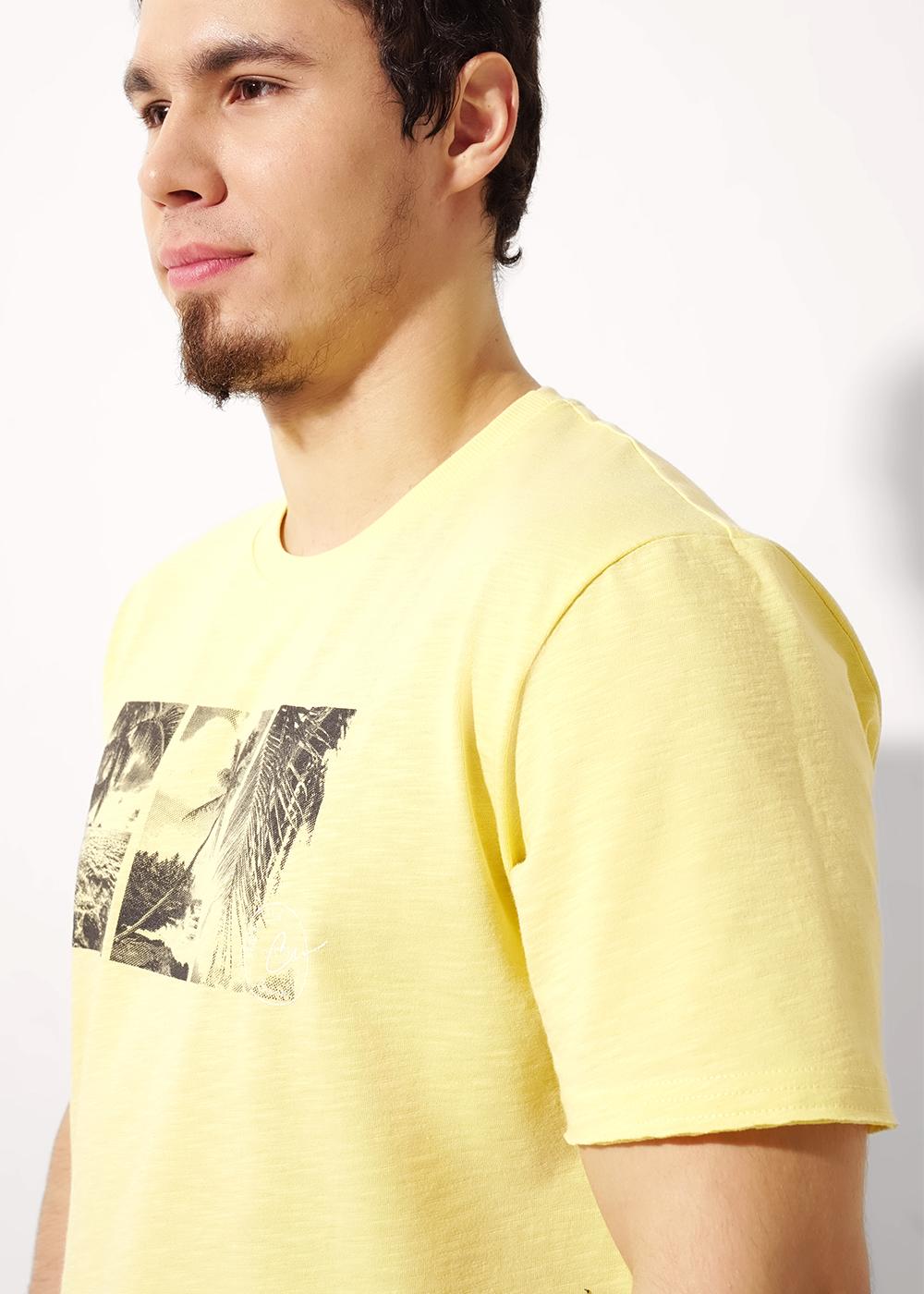 Набор мужской для дома состоящий из футболки и шорт. Футболка из фактурного трикотажного полотна "флам" с круглым вырезом горловины, с открытыми срезами и стильным принтом. Шорты из поплина на эластичном поясе с функциональными карманами и шнуром.