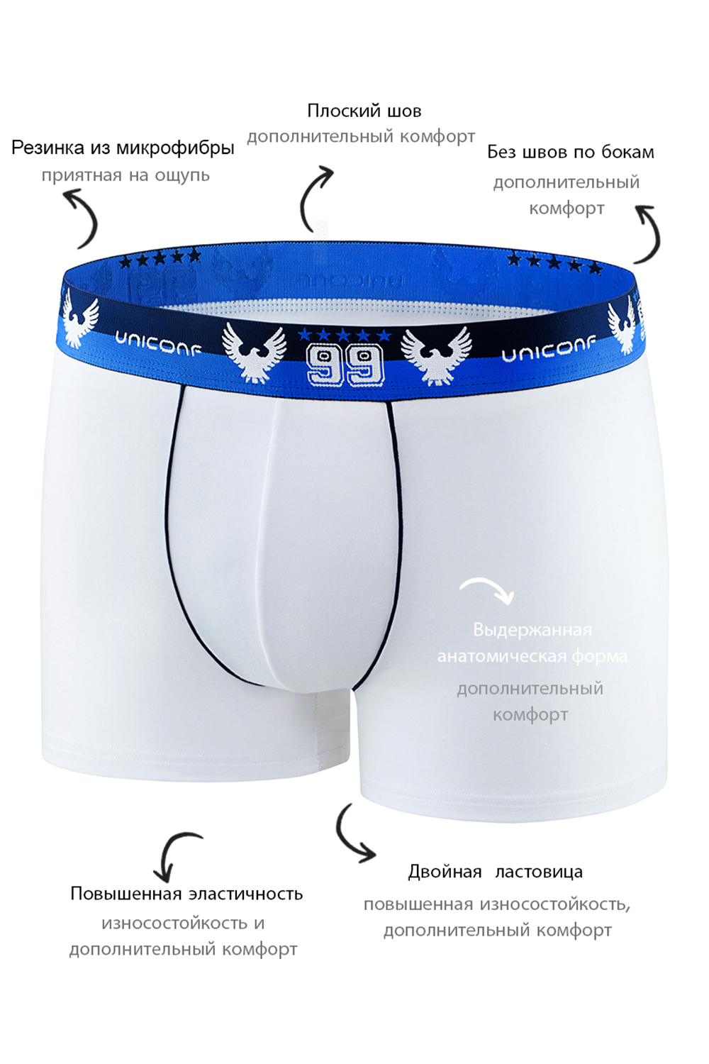 Классические однотонные боксеры UNICONF из премиального гипоаллергенного хлопка с добавлением эластана. Брендированная пришивная резинка из микрофибры в цвет изделия обеспечивает терморегуляцию и комфортное прилегание к телу. Усиленная передняя панель изделия, отсутствие боковых швов делают эту модель устойчивым к стиркам и продлевают срок использования. Изделие не заметно под одеждой, имеет анатомически правильный крой, что в сочетании с инновационными технологиями обработки швов позволяет сделать фигуру визуально более подтянутой и спортивной.