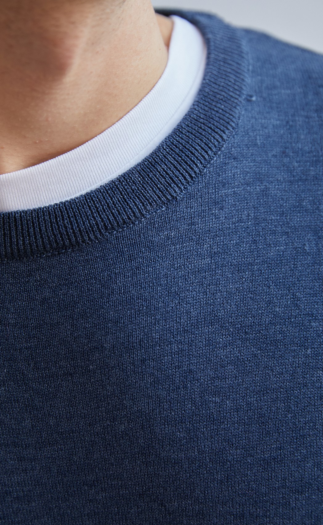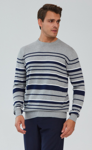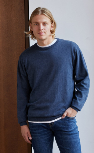Однотонный джемпер Fine Joyce из хлопка меланжевых оттенков с округлой горловиной. Благодаря удобству и универсальности найдет свое место в гардеробе любого мужчины.