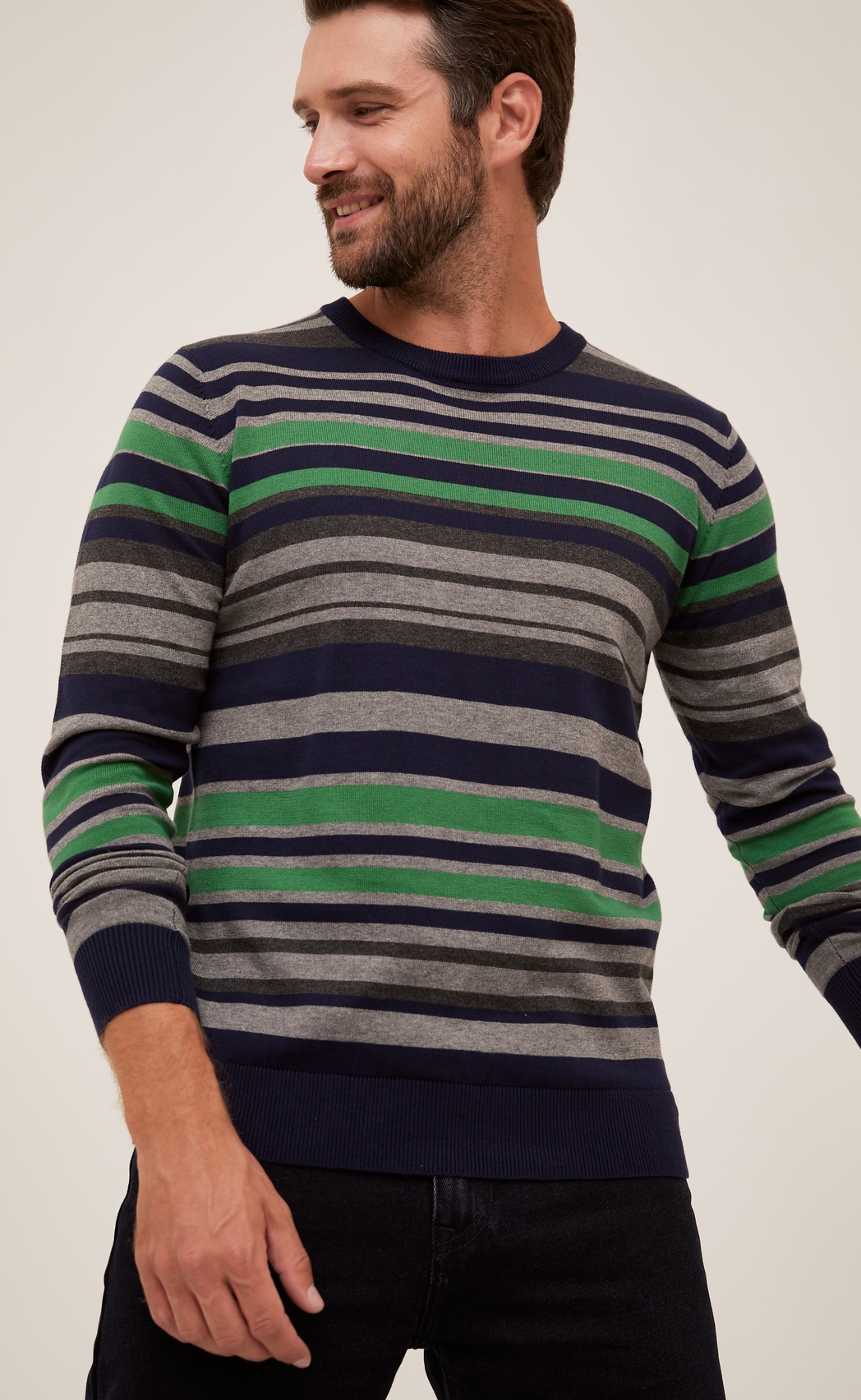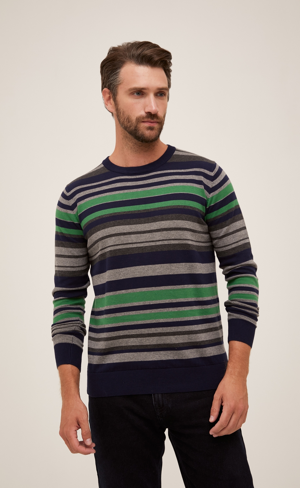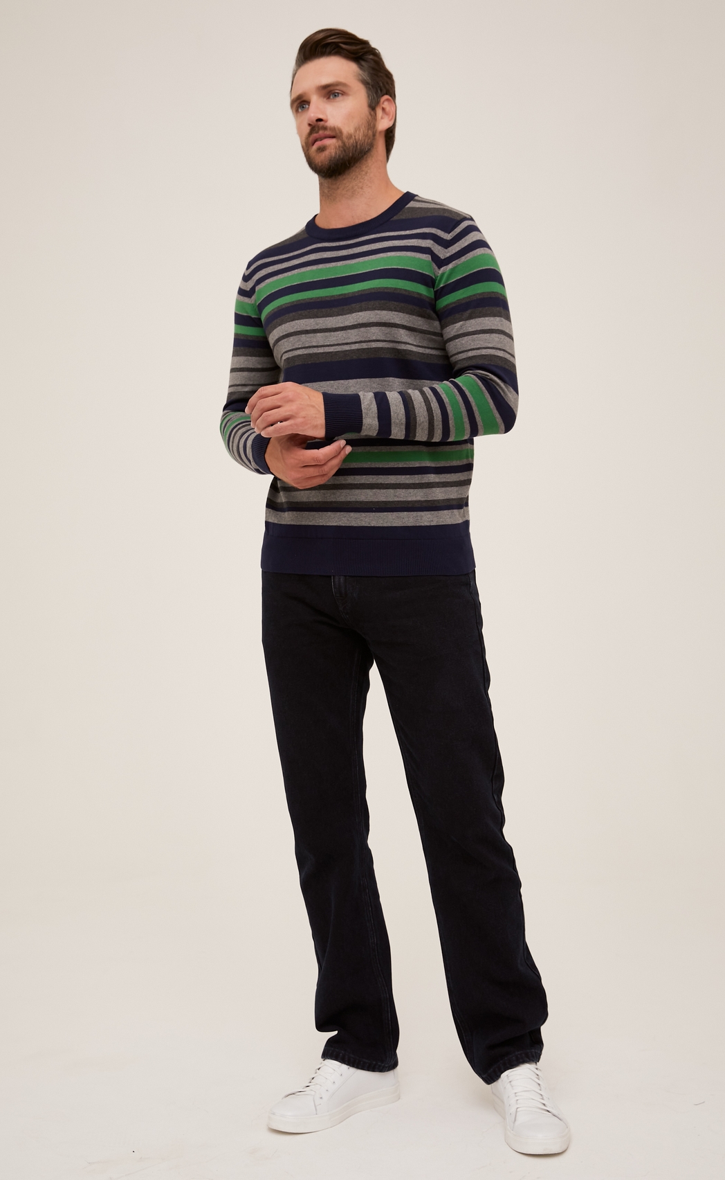 Джемпер мужской от Fine Joyce в полоску. Джемпер стандартного кроя с круглым вырезом, низ рукавов и модели отделаны окантовкой в рубчик. Джемпер мужской трикотажный комфортного кроя из приятного на ощупь трикотажного полотна с антипиллинговым эффектом (не образуются катышки), не линяет, долгое время не теряет внешний вид, если стирать при температуре 30С. Джемпер мужской с длинным рукавом прекрасно сидит по фигуре, а мягкий трикотаж (состав 100% хлопок) дарит максимальный комфорт. Благодаря удобству и универсальности этот пуловер найдет свое место в гардеробе любого мужчины. Джемпер, пуловер, водолазка, кардиган от бренда Fine Joyce – отличный вариант для повседневного стиля одежды, оптимальный выбор по цене и качеству.