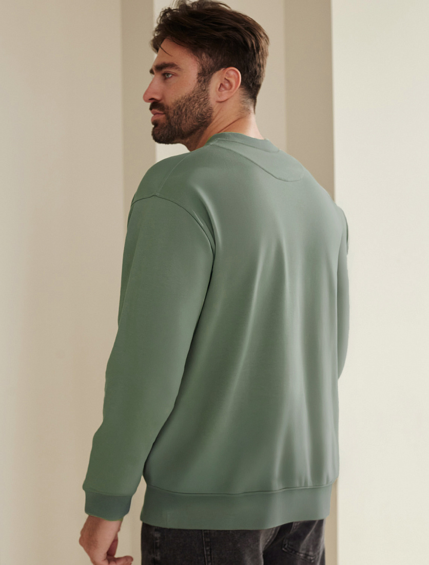 Джемпер с круглым воротом выполнен из премиального эластичного футера двухнитки. Свободный силуэт не сковывает движений. Модель дополнена вышивкой с фирменным логотипом бренда. св.оливковый