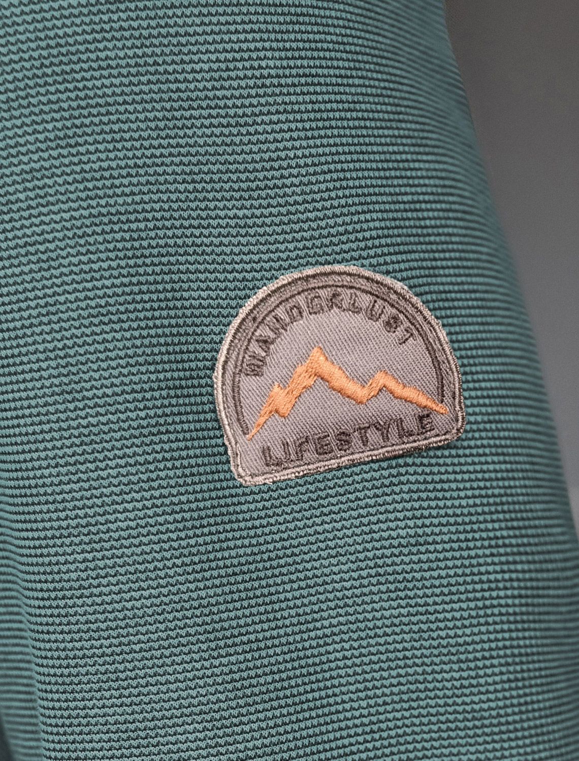Легкий и невероятно комфортный джемпер изумрудного цвета создан для повседневного образа. Мягкий фактурный эластичный трикотаж приятно ощущается на теле, не сковывает движения и отлично подходит для носки в любое время года. Полуприлегающий крой обеспечивает свободу и удобство, позволяя выглядеть стильно и чувствовать себя уверенно каждый день. Круглый ворот украшен декоративной нашивкой в виде перевернутого треугольника, добавляющей оригинальности.. Манжеты на рукавах и по низу аккуратно оформлены, что придает завершенность внешнему виду и способствует сохранению формы джемпера после длительной носки и многочисленных стирок. На груди нашивка из экокожи в виде логотипа бренда, подчеркивающая индивидуальность каждого мужчины.