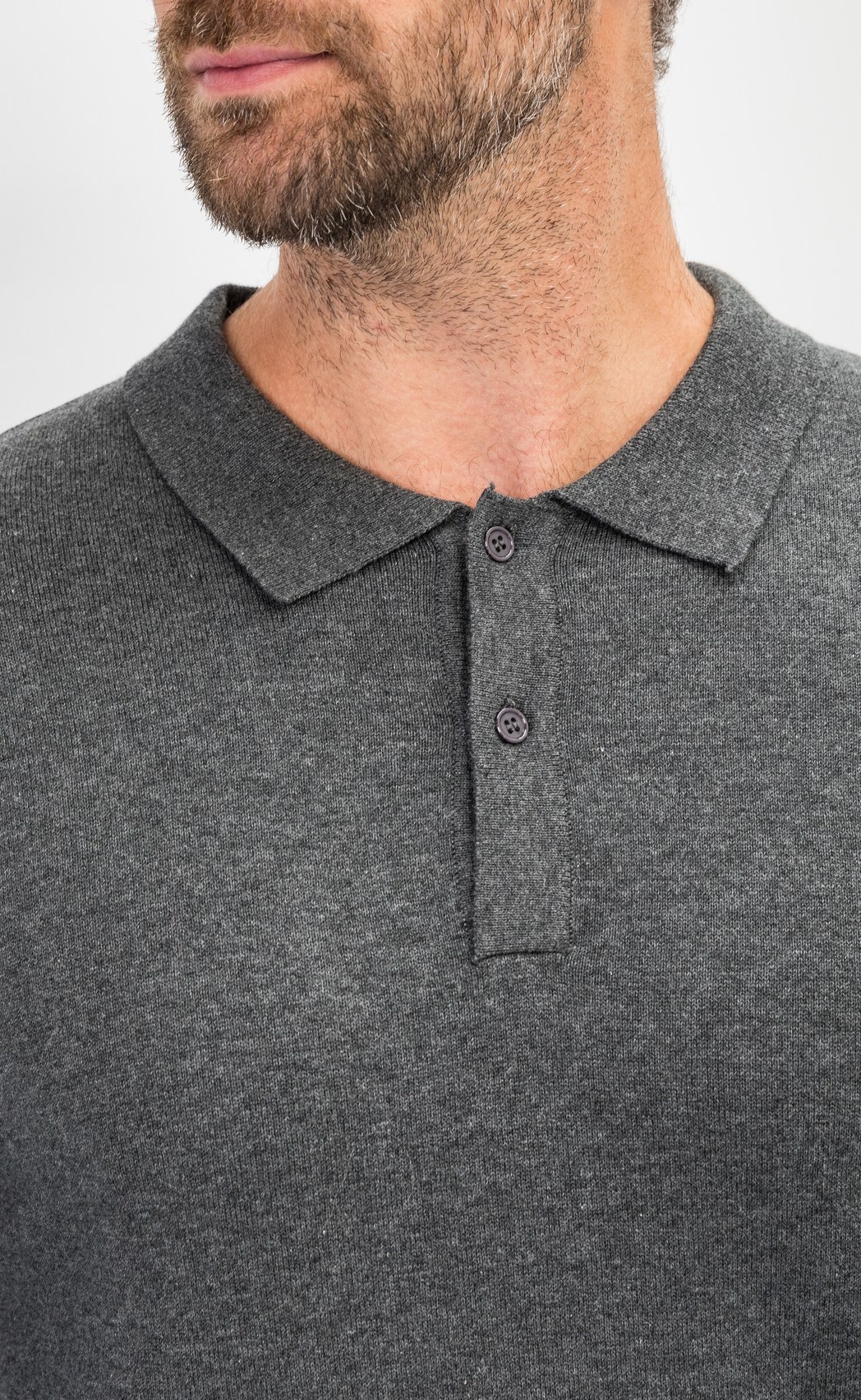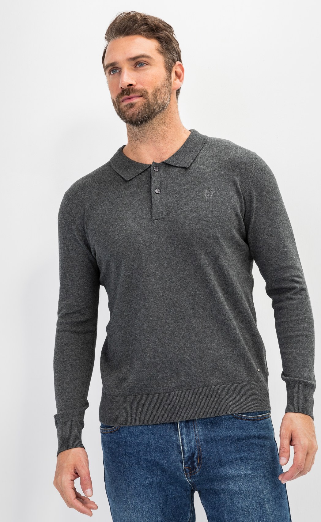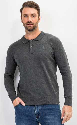 Наименование для сайта: Джемпер мужской с отложным воротником и планкой на пуговицах F221-15-22021 темно-серый меланж