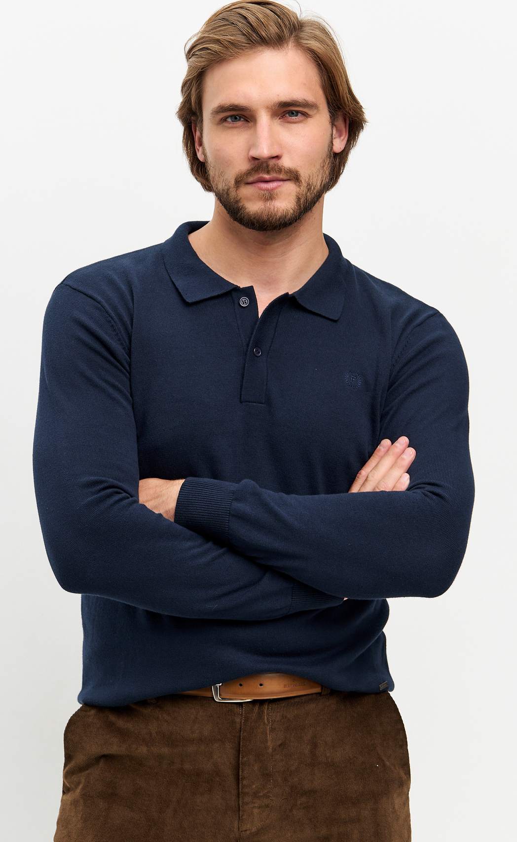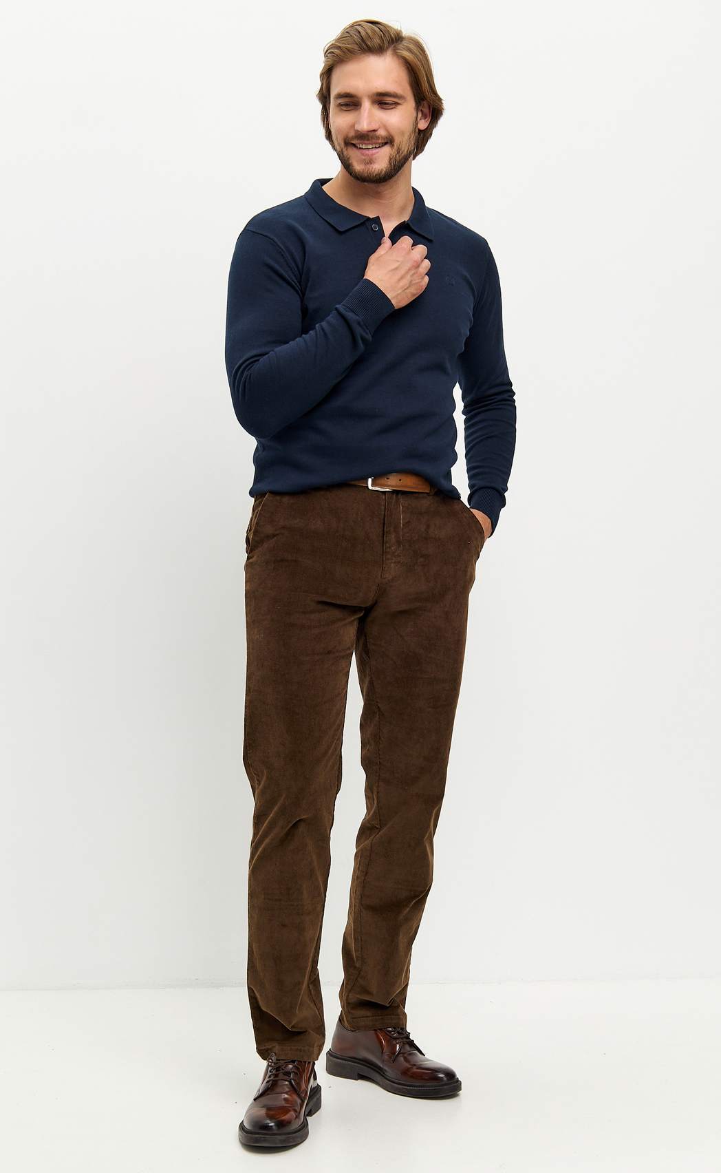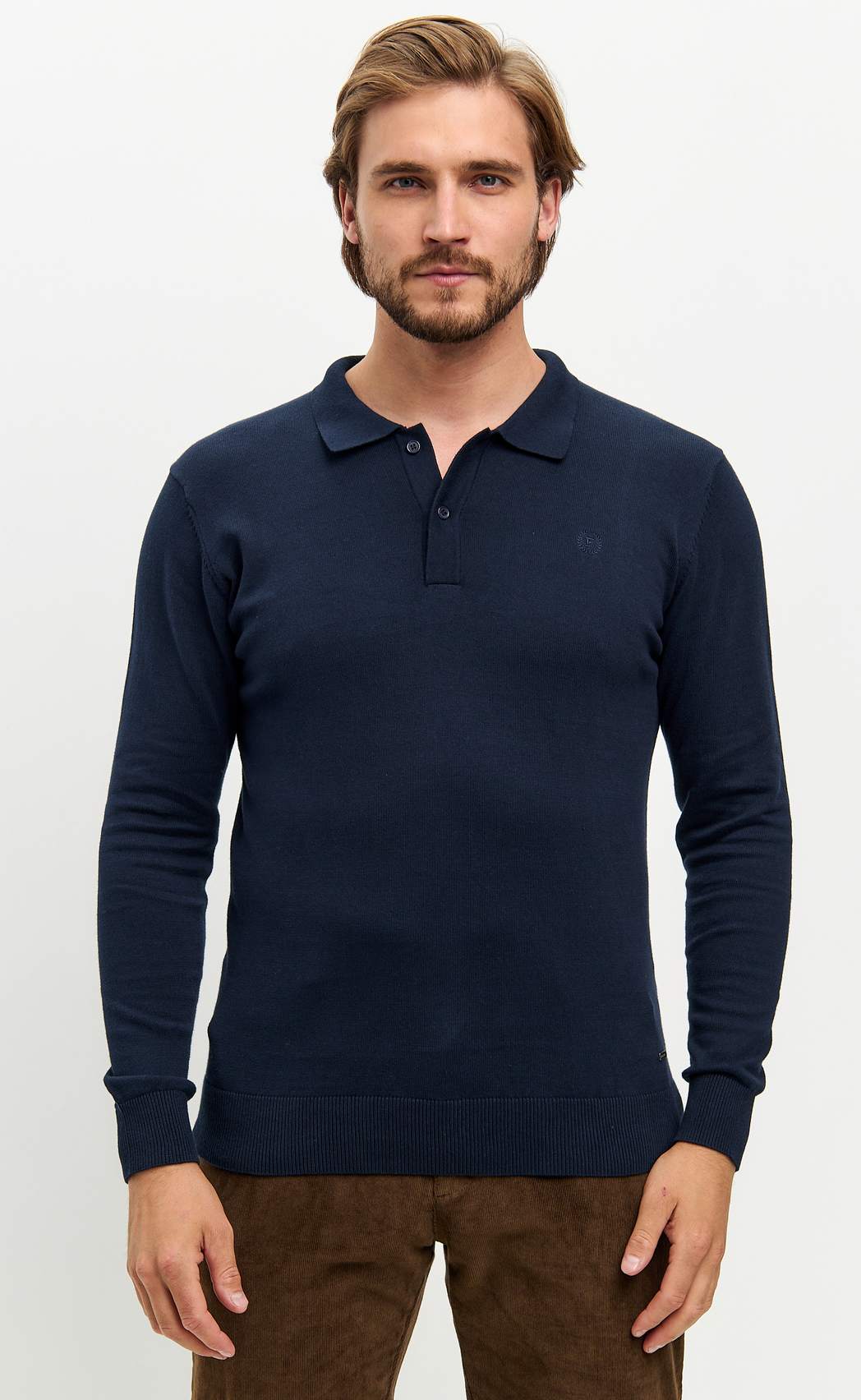 Джемпер мужской от бренда Fine Joyce темно-синего цвета с отложным воротником и планкой на пуговицах. Джемпер из пряжи хлопок, воротник отложной на пуговицах. Модель комфортного прямого кроя из приятного на ощупь трикотажного полотна с антипиллинговым эффектом (не образуются катышки), не линяет, долгое время не теряет внешний вид, если стирать при температуре 30С. Свитер прекрасно сидит по фигуре, а трикотаж (состав 100% хлопок) дарит максимальный комфорт. Купить мужской джемпер оптом можно напрямую от производителя, зарагестрировавшись на сайте. В карточке товара Вы найдете размерные характеристики, которые помогут Вам определиться с размером. Fine Joyce динамично развивающийся российский бренд. Fine Joyce — высокое качество по оптимальной цене!