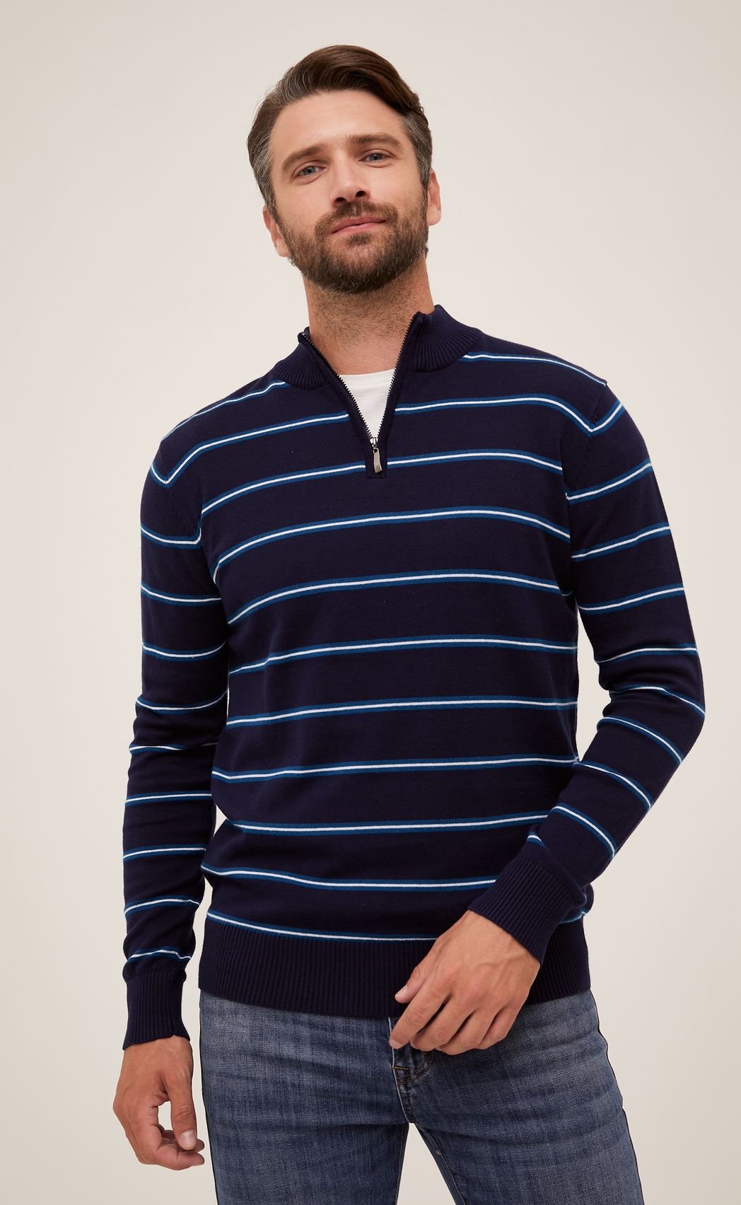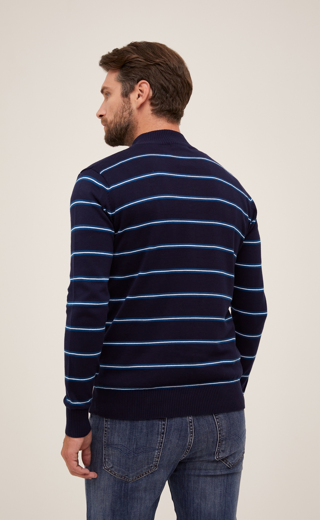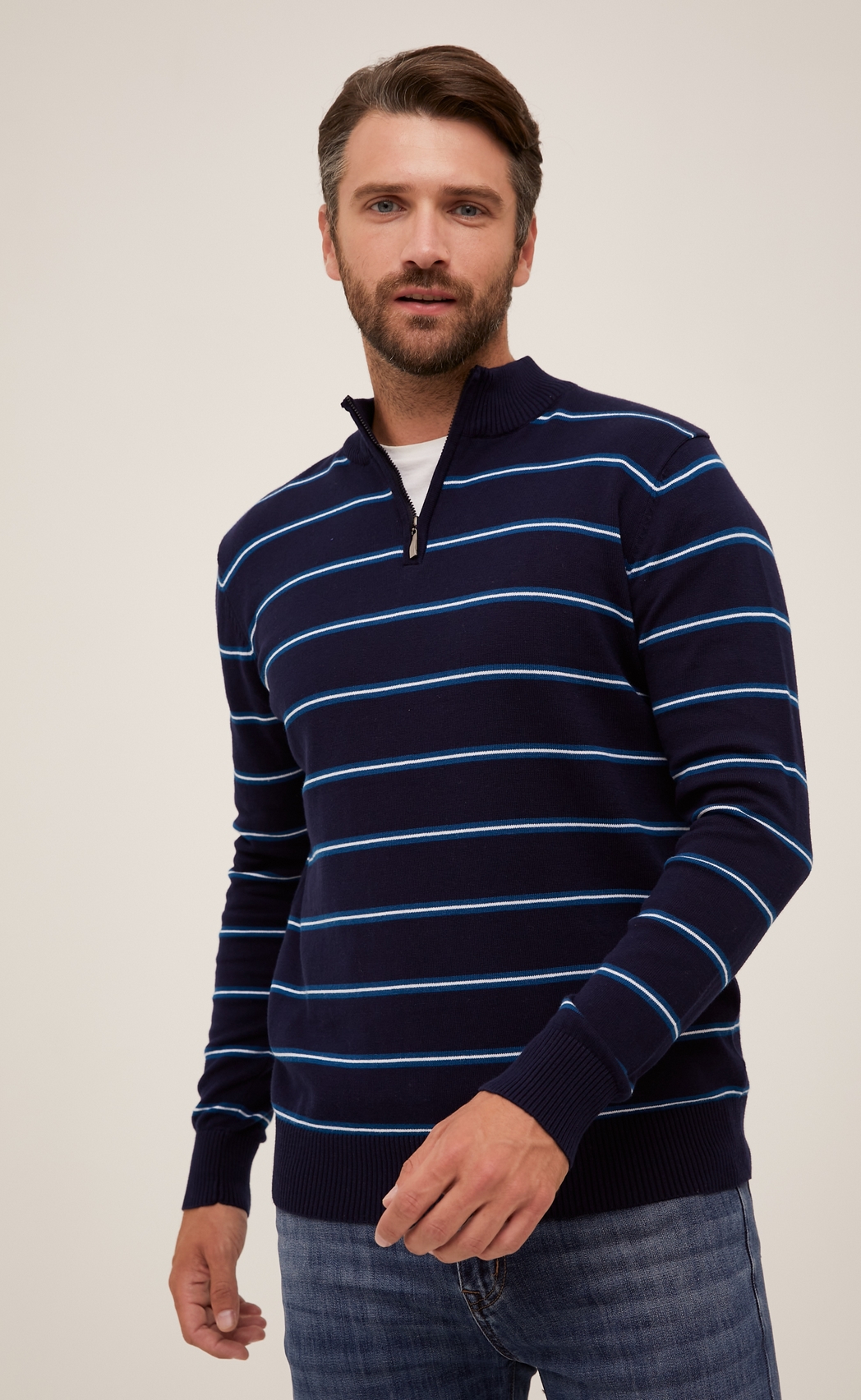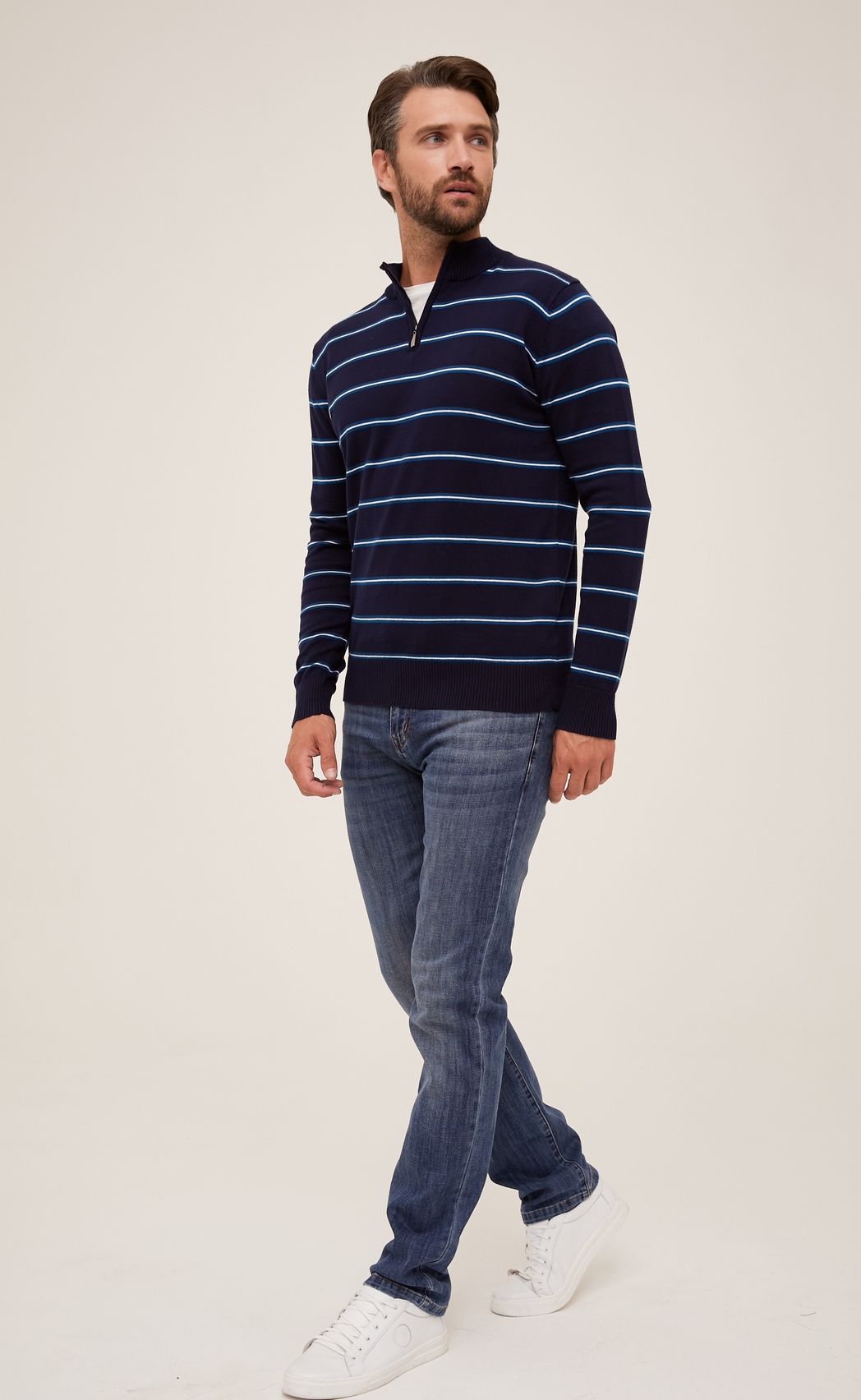 Наименование для сайта: Джемпер мужской с воротником на молнии в полоску F021-15-2104 темно-синий