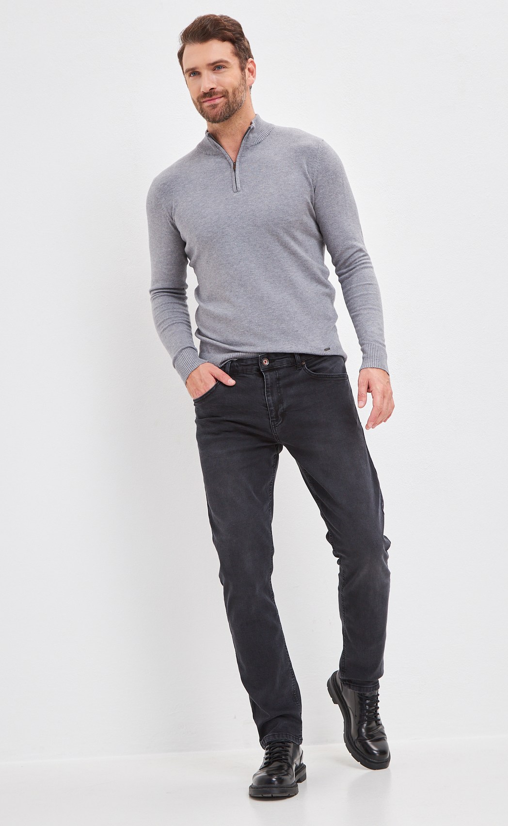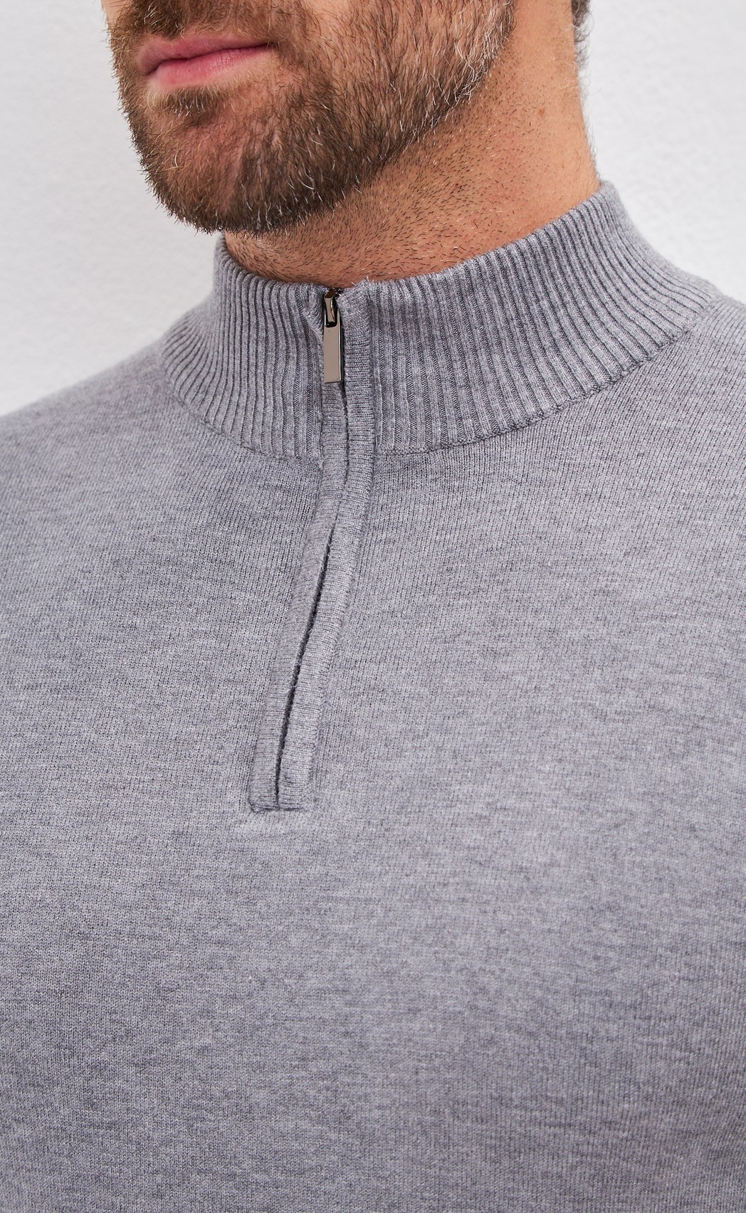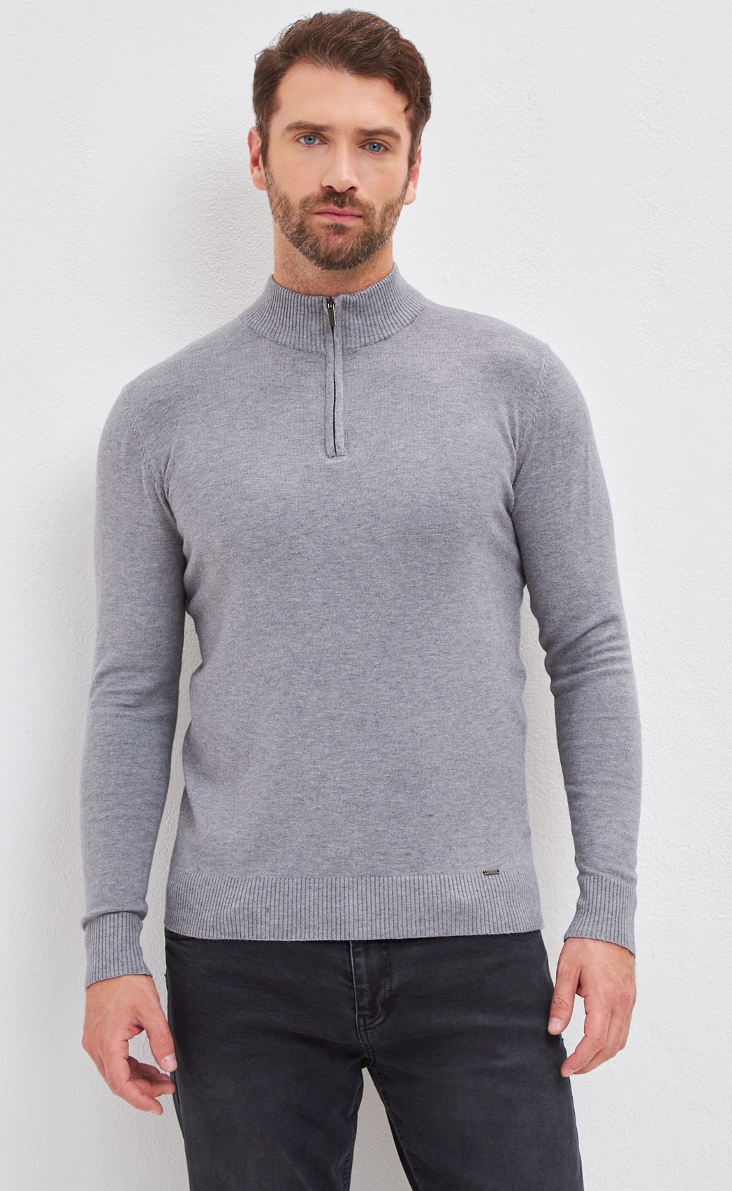 Наименование для сайта: Джемпер мужской с воротником-стойкой на молнии F121-01-889 серый меланж