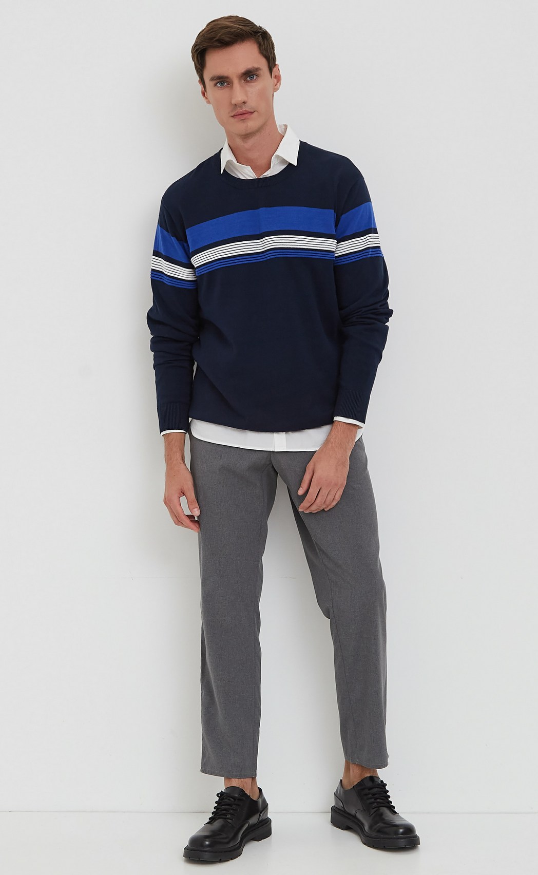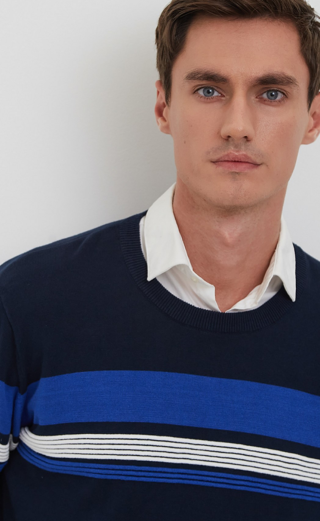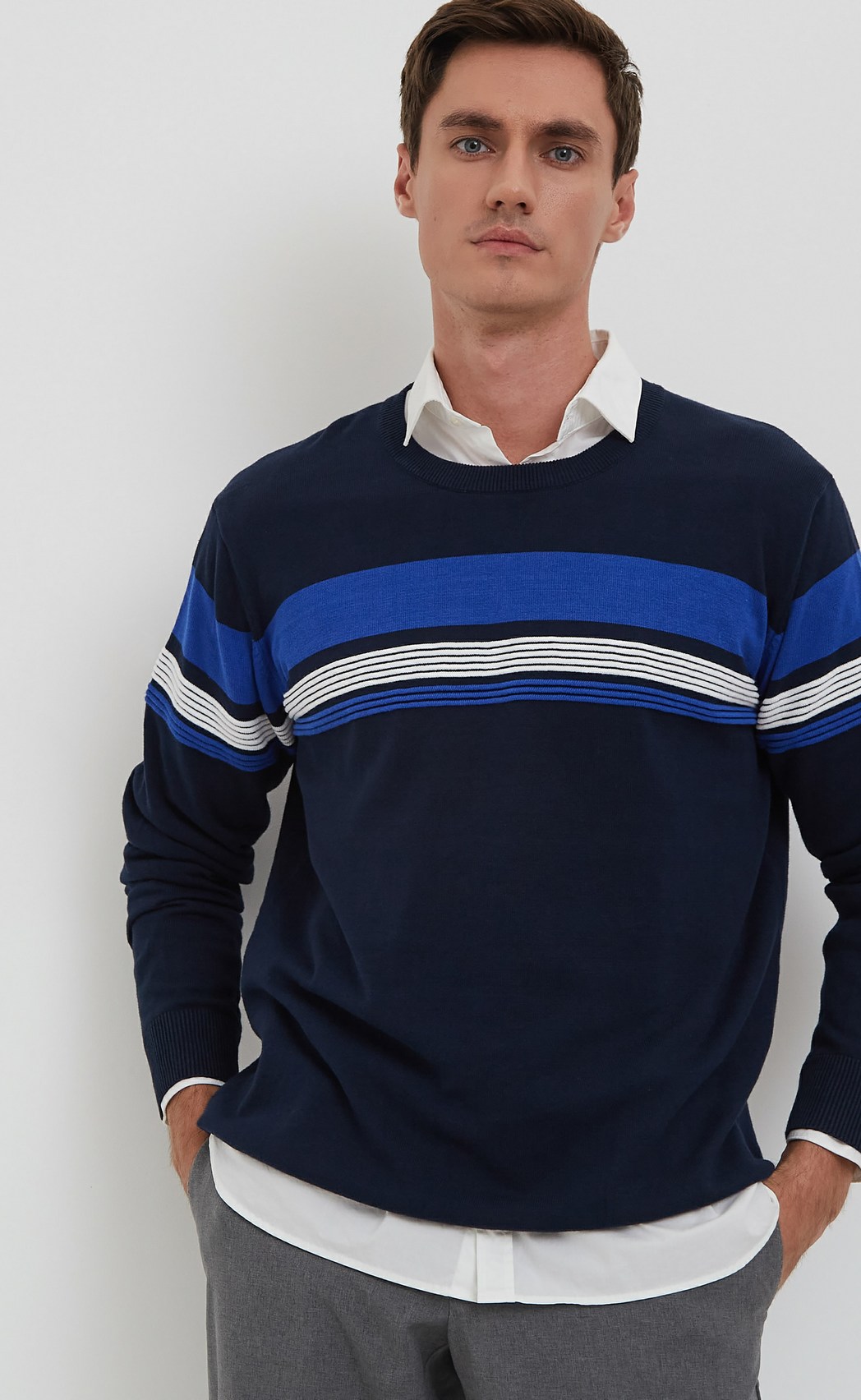 Наименование для сайта: Джемпер мужской в полоску F121-15-12051 синий