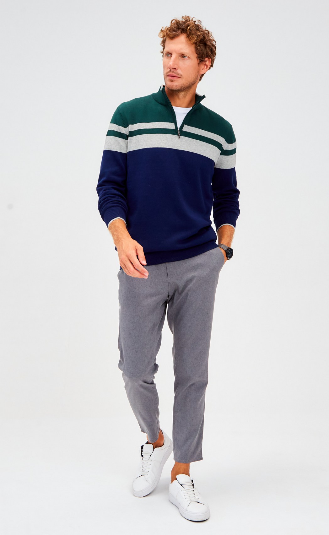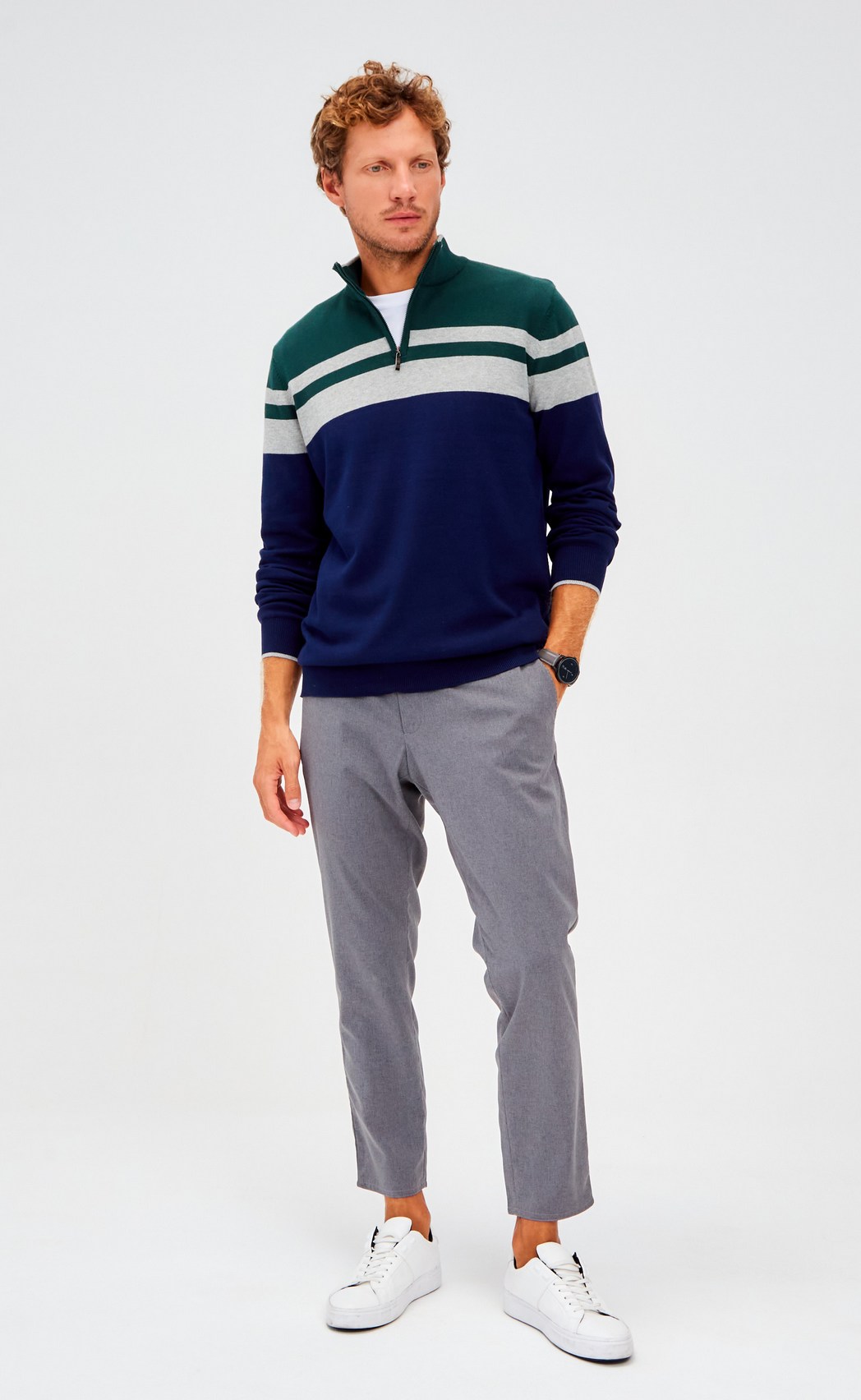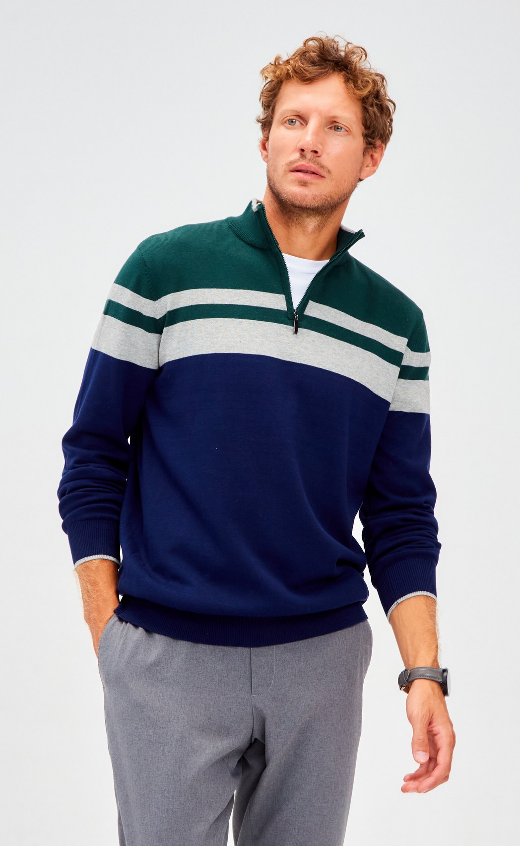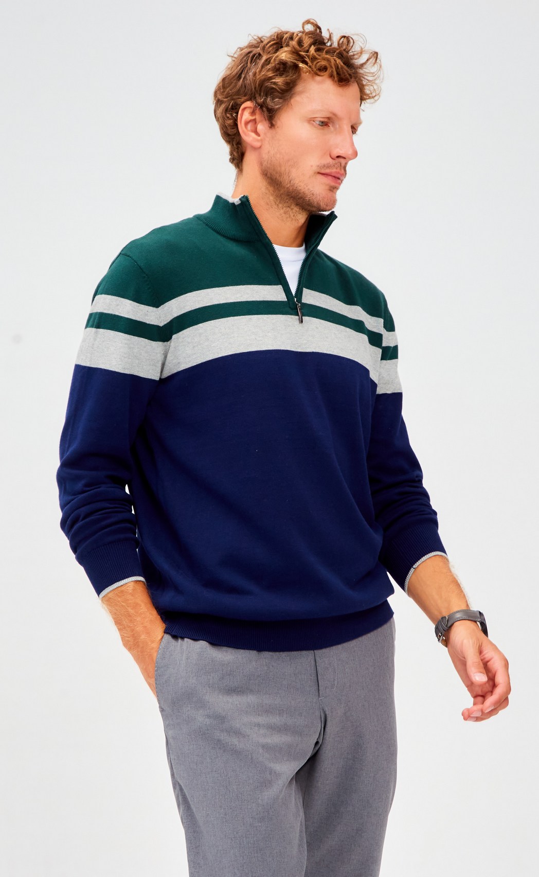 Наименование для сайта: Джемпер мужской в полоску с воротником-стойкой на молнии F221-15-831 сине-зелёный