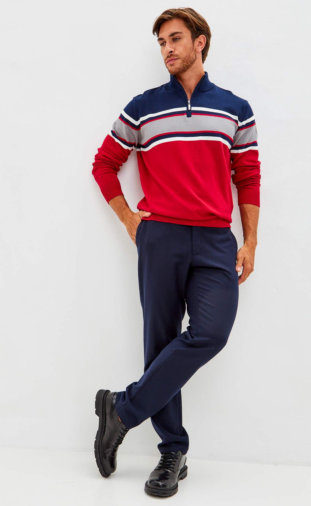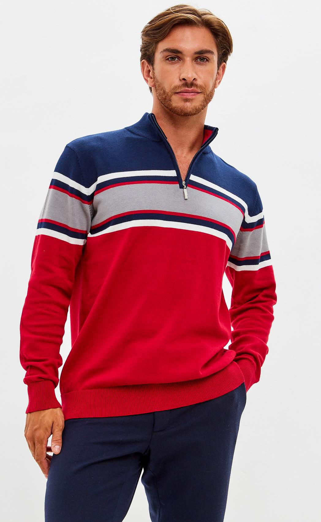 Наименование для сайта: Джемпер мужской в полоску с воротом на молнии F221-15-22022 сине-красный