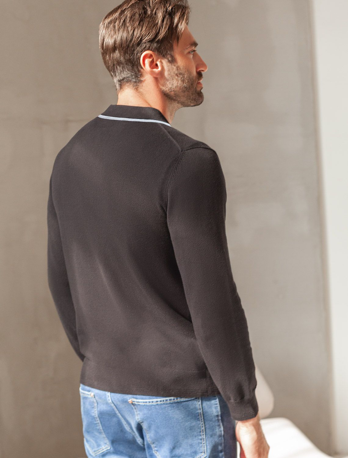 Джемпер-поло из хлопка с нейлоном U39.017 черный