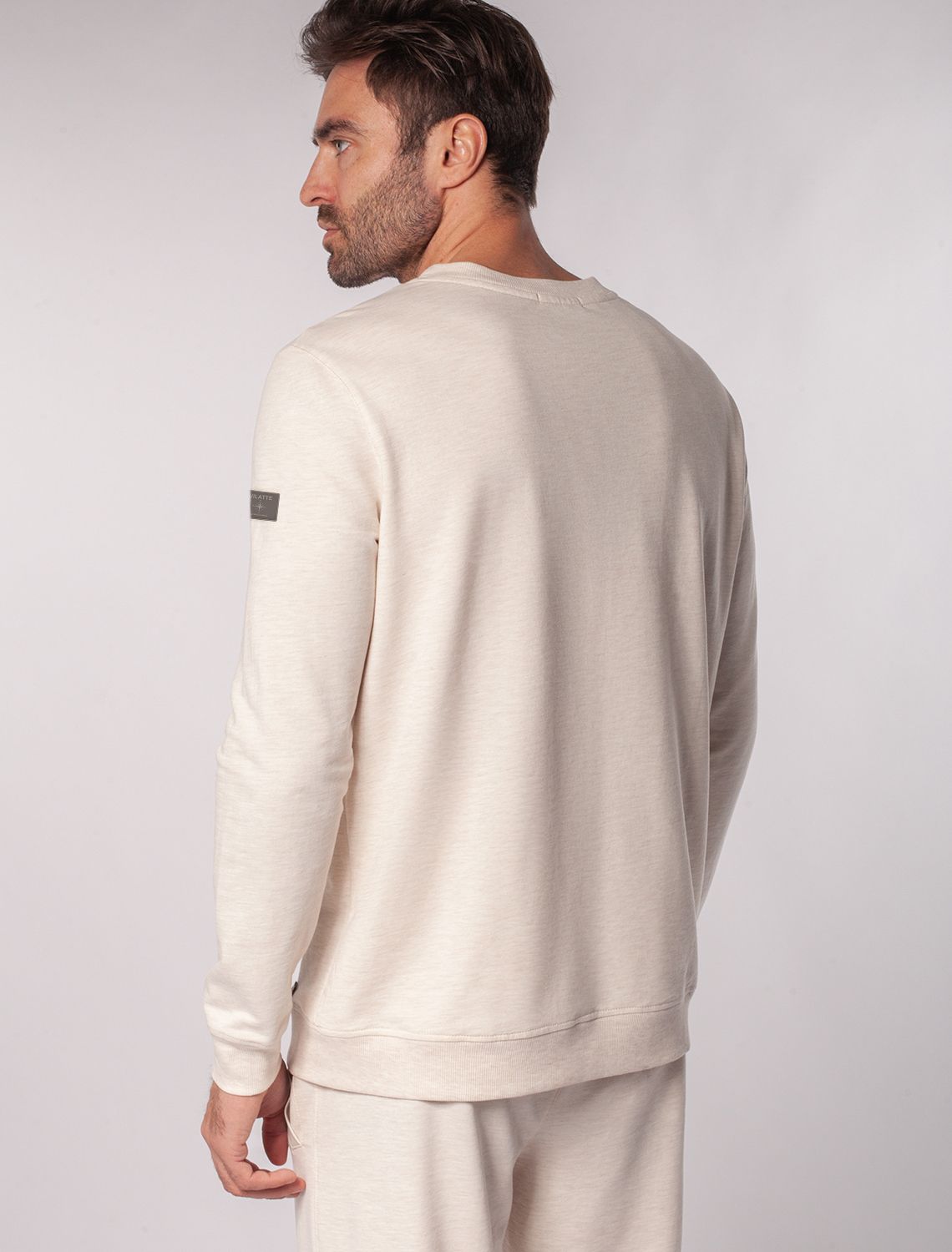 Джемпер с авторским принтом из легкого футера U49.014 бежевый меланж