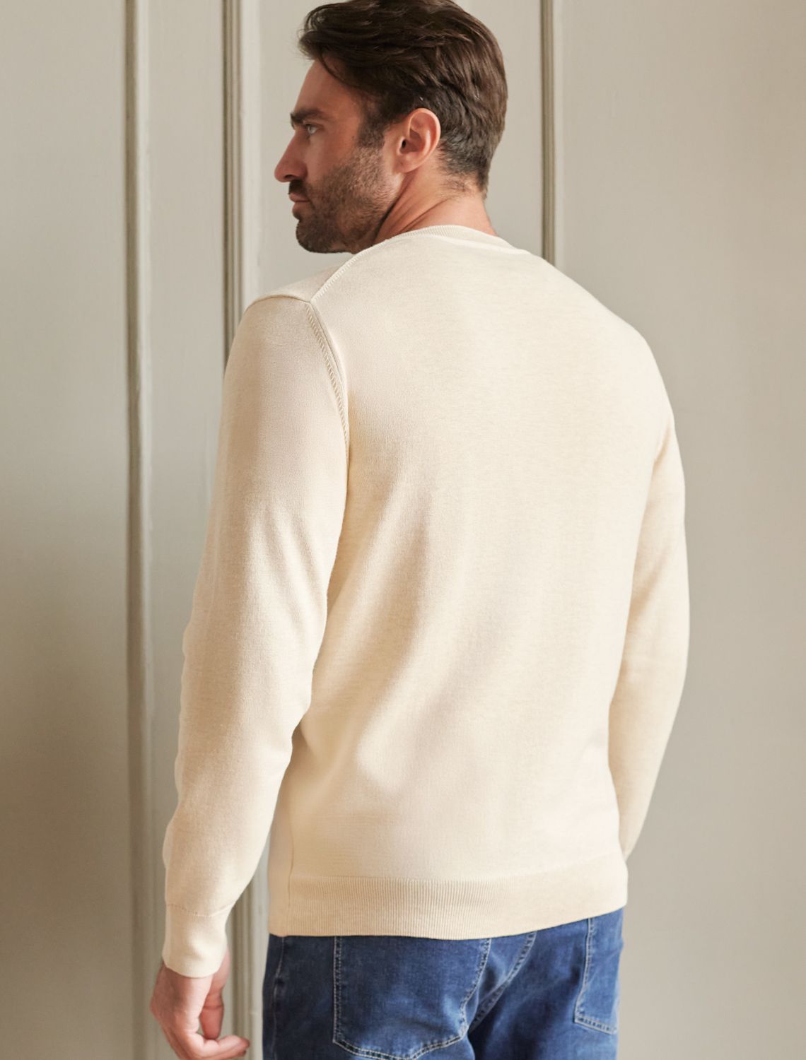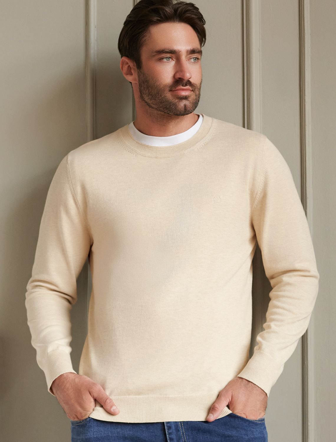 Джемпер с круглым воротом из хлопка с нейлоном U39.014 бежевый меланж