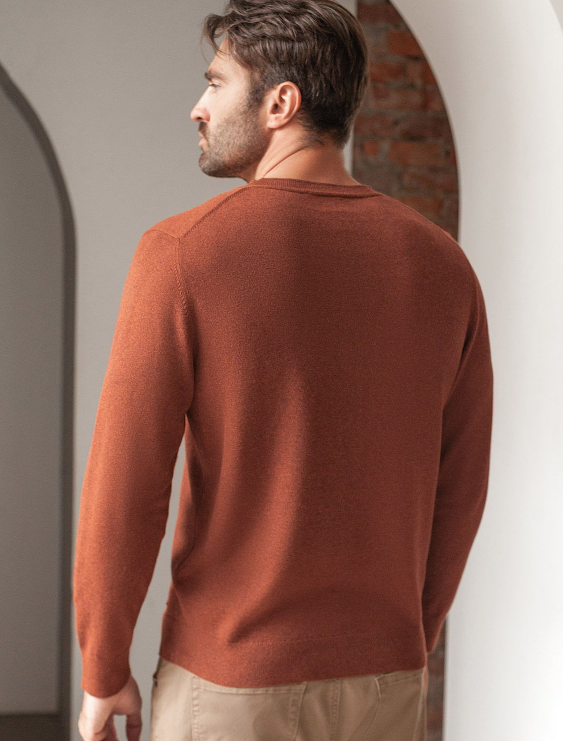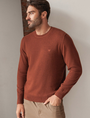 Джемпер с круглым воротом из хлопка с нейлоном U39.014 терракотовый_меланж