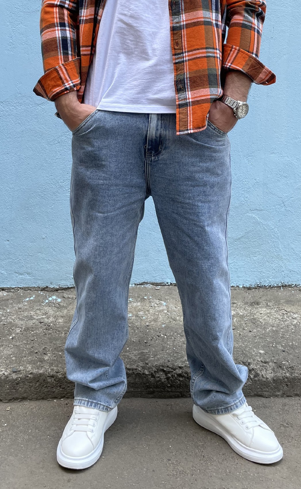Наименование для сайта: Джинсы укороченные свободные мужские AF-01 голубые