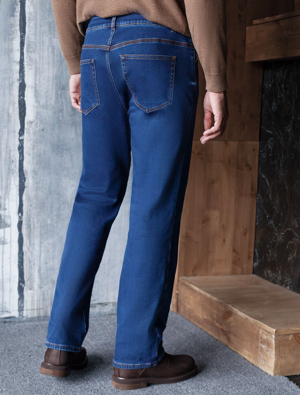 Теплые джинсы синего цвета прямого кроя созданы для мужчин, ценящих комфорт и стиль даже в холодную осень или зиму. Повседневные джинсы выполнены из эластичного денима, легко тянутся и не сковывают движений, обеспечивая правильный баланс между свободой и удобной посадкой стандартного фасона. Внутри мягкий флис дарит приятные ощущения, надежно согревают в холодную погоду и делают каждую прогулку максимально комфортной. Свободный классический крой подходит на разные типы фигур, в том числе и большие размеры. Правильная посадка гарантирует удобство и комфортные ощущения при носке. Джинсы дополнены пятью карманами и брендированным патчем на поясе. Контрастная прострочка и легкая декоративная стирка гармонично сочетаются с классическим цветом джинс, добавляя стильный акцент в образ. Джинсы удобные на все случаи жизни: они сохраняют форму, не деформируются при носке и обеспечивают оптимальную теплоизоляцию. Утепленный материал создает дополнительный уровень защиты от холода, что делает изделие надежным выбором на зиму и осень. Комфортные брюки отлично сочетаются с разными образами благодаря универсальному дизайну. Они подходят тем, кто ценит практичность и стиль без компромиссов по качеству.